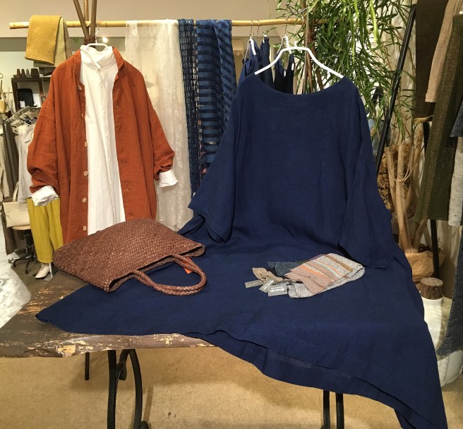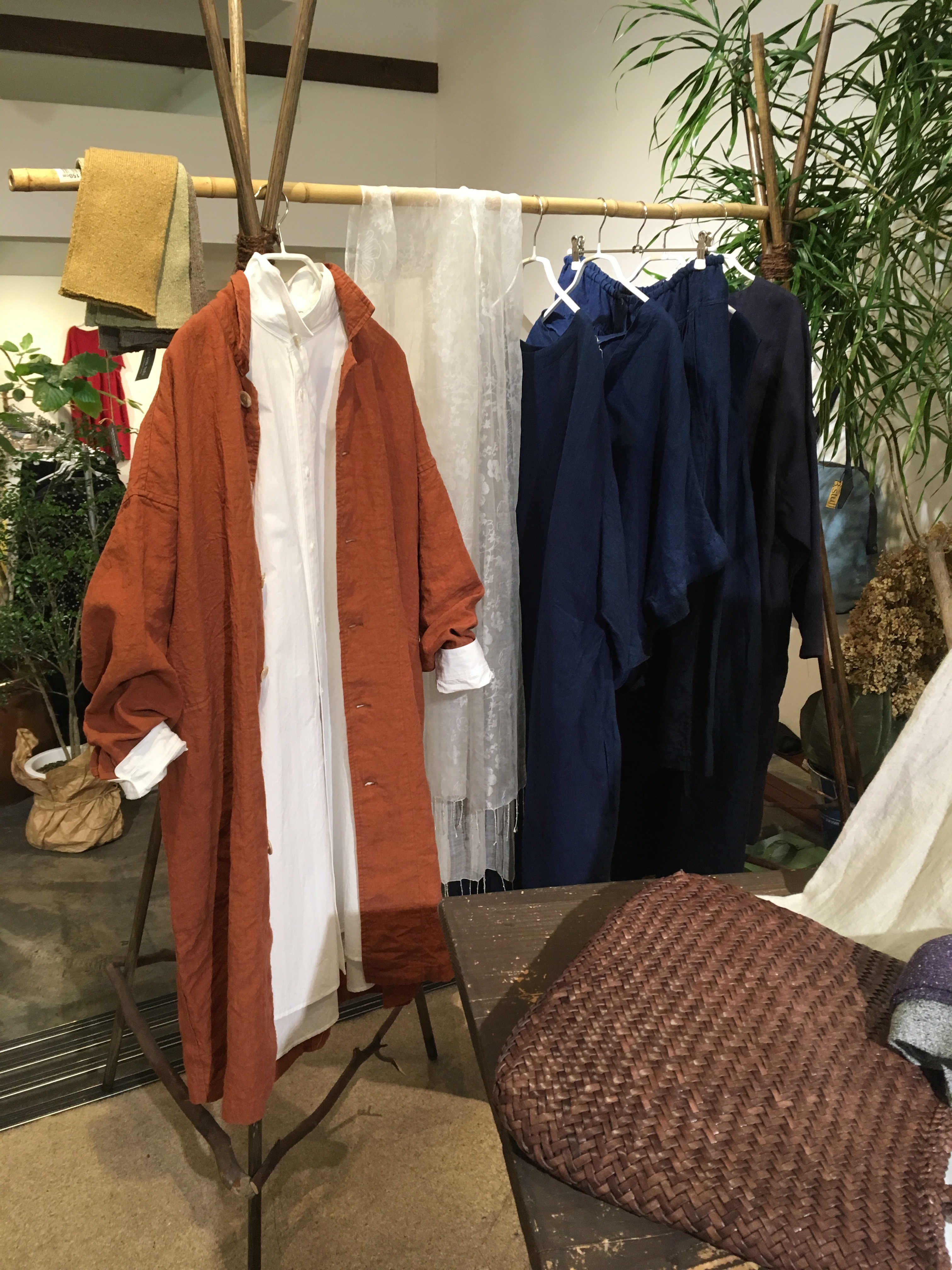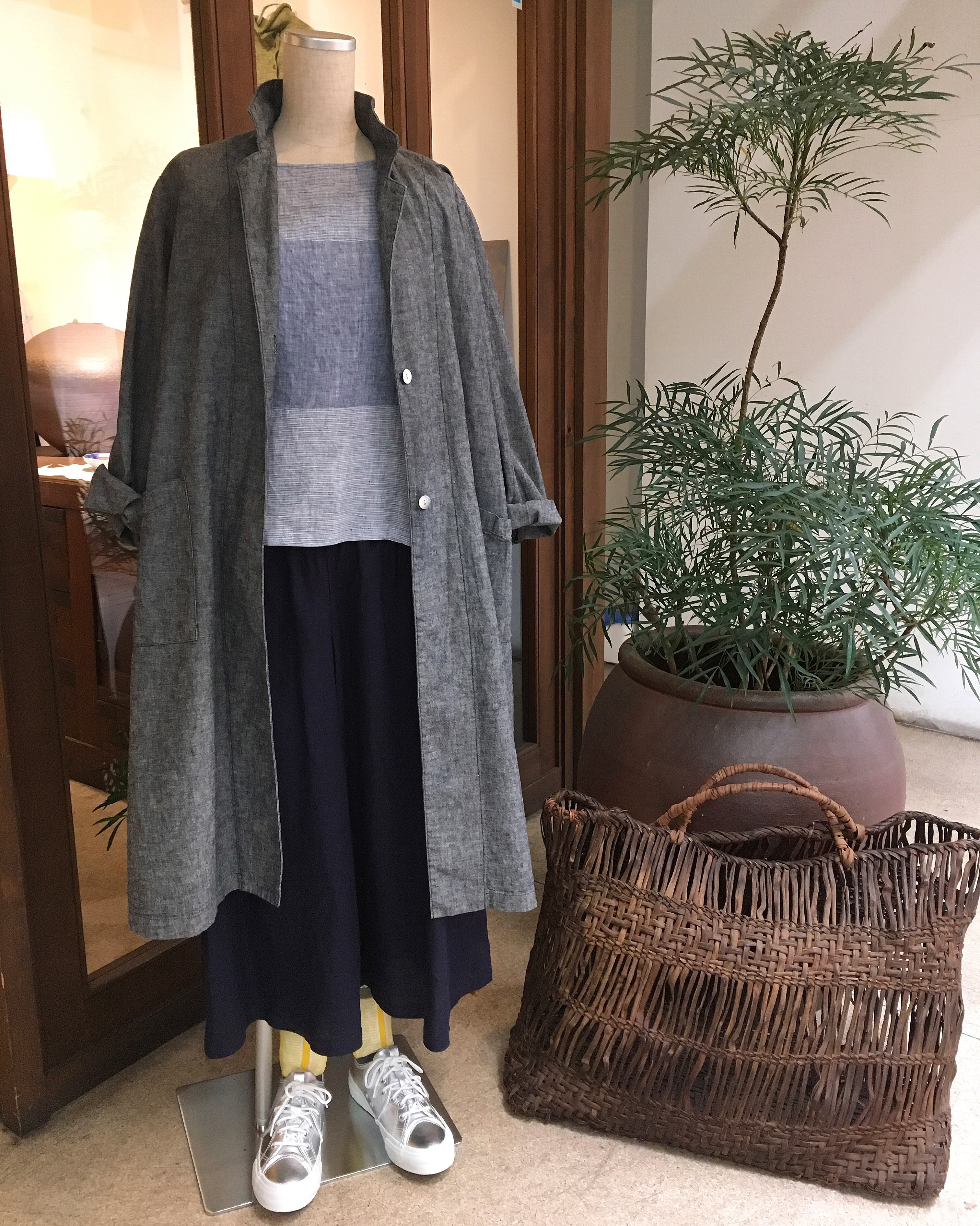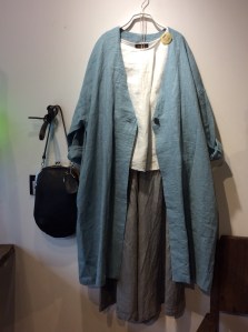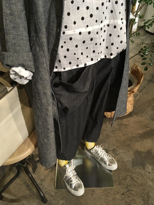 高城染工 デニムコート 33,000円+税 、メイアファボリの麻のワイドパンツ 17,000円+税