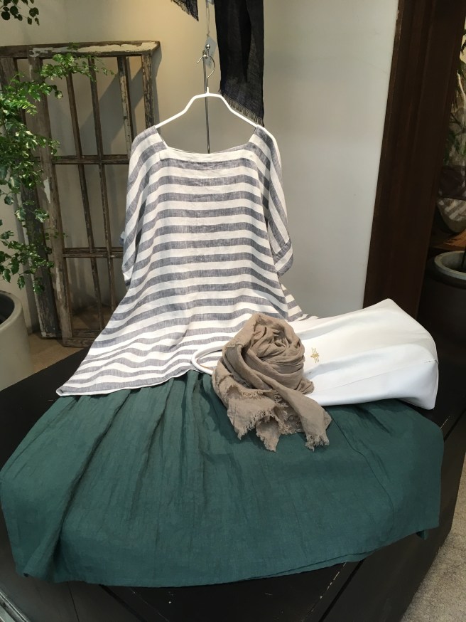 インナーのチュニック、デニール、イタリアリネンのボーダー、29,000円+税