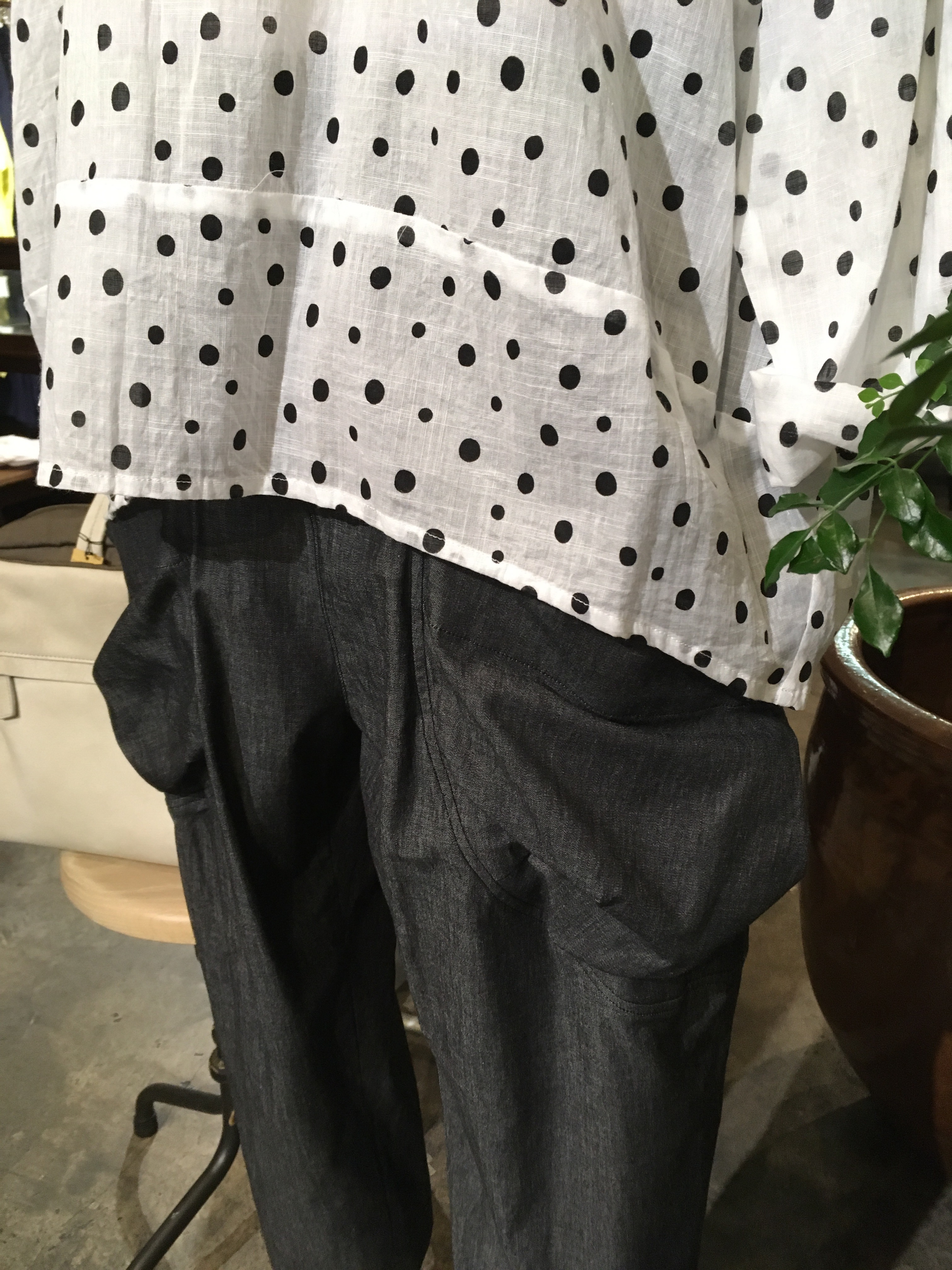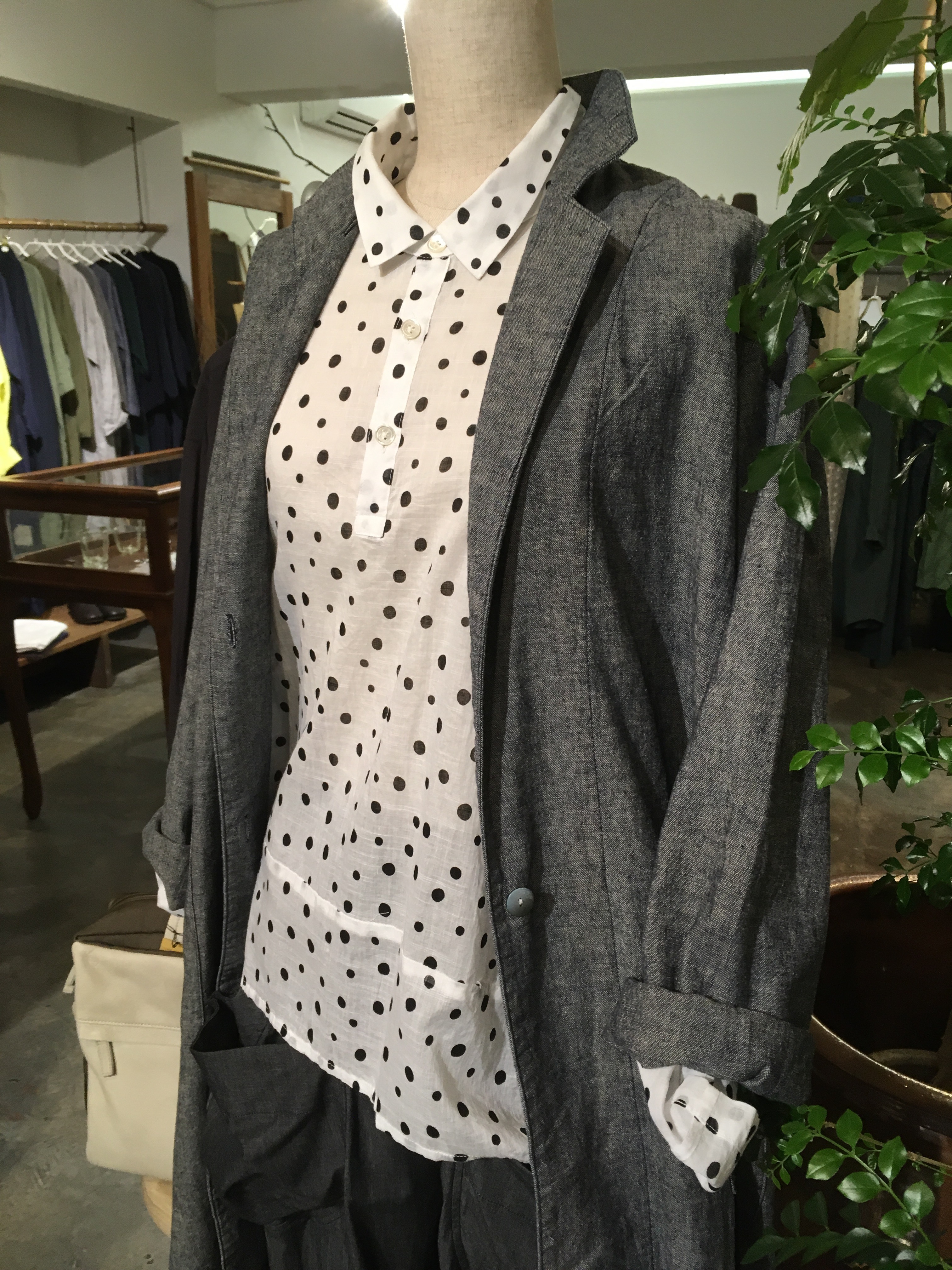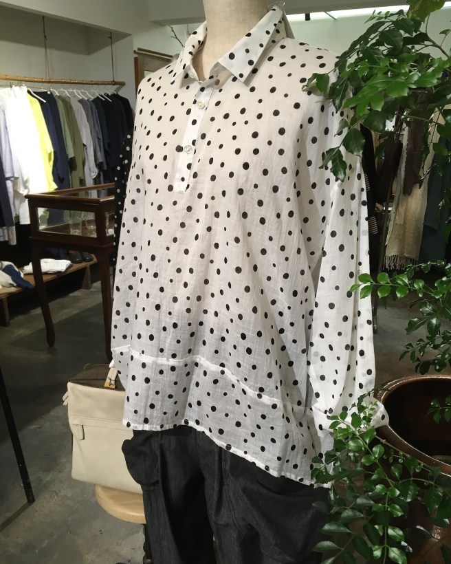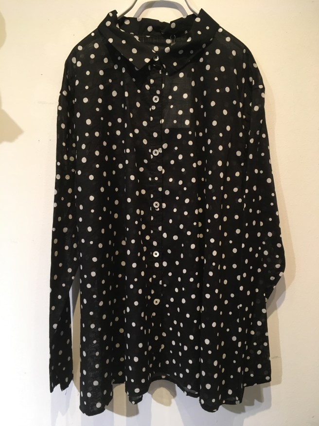 👇型違い、黒の水玉ブラウスは前が全部開くデザイン✨