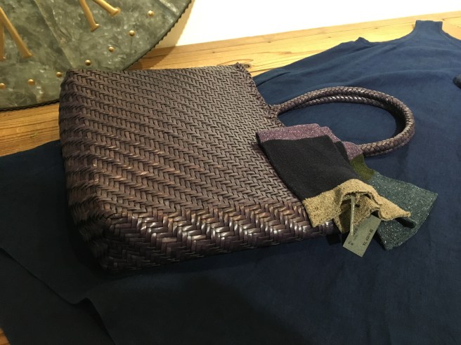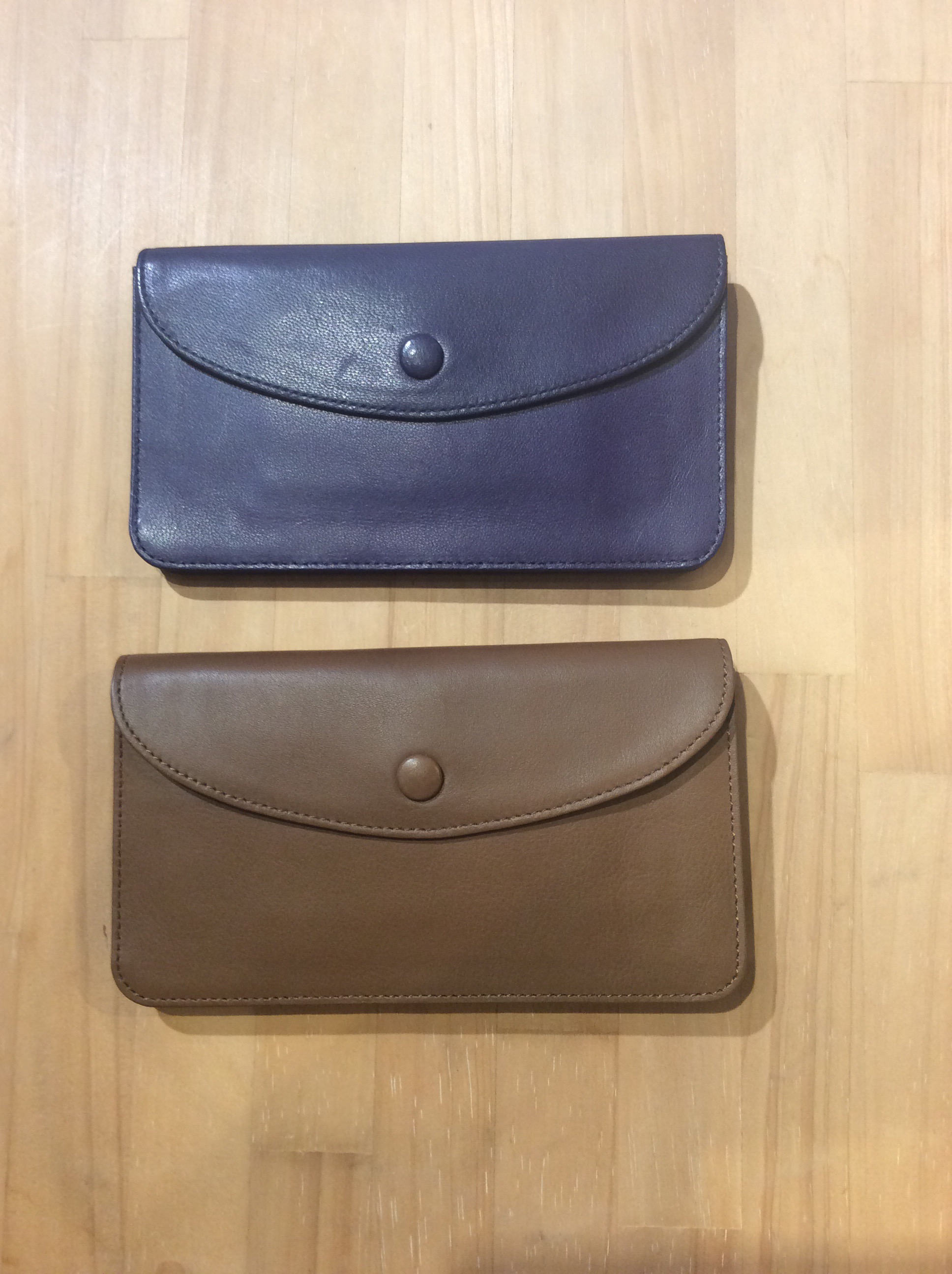 👇水牛の革のバッグ(blue)は、見た目は紫ですが、実は時と共に味のある茶系に変化していきます😃