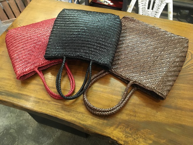 下の写真では赤と黒が、33,000円+税(小サイズ、幅30センチ×高さ28センチ位、マチは薄め)