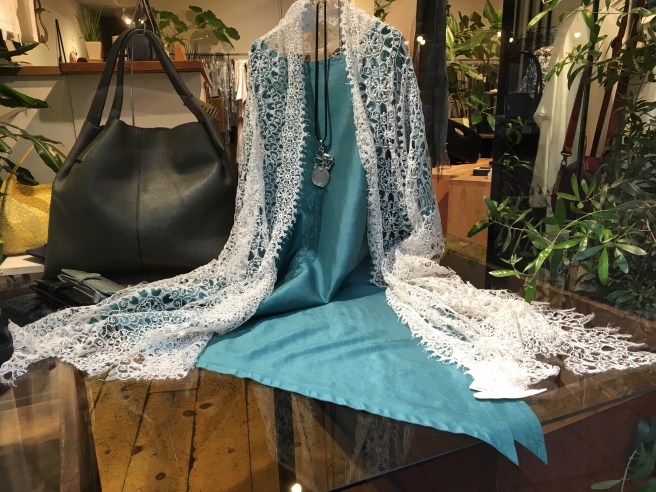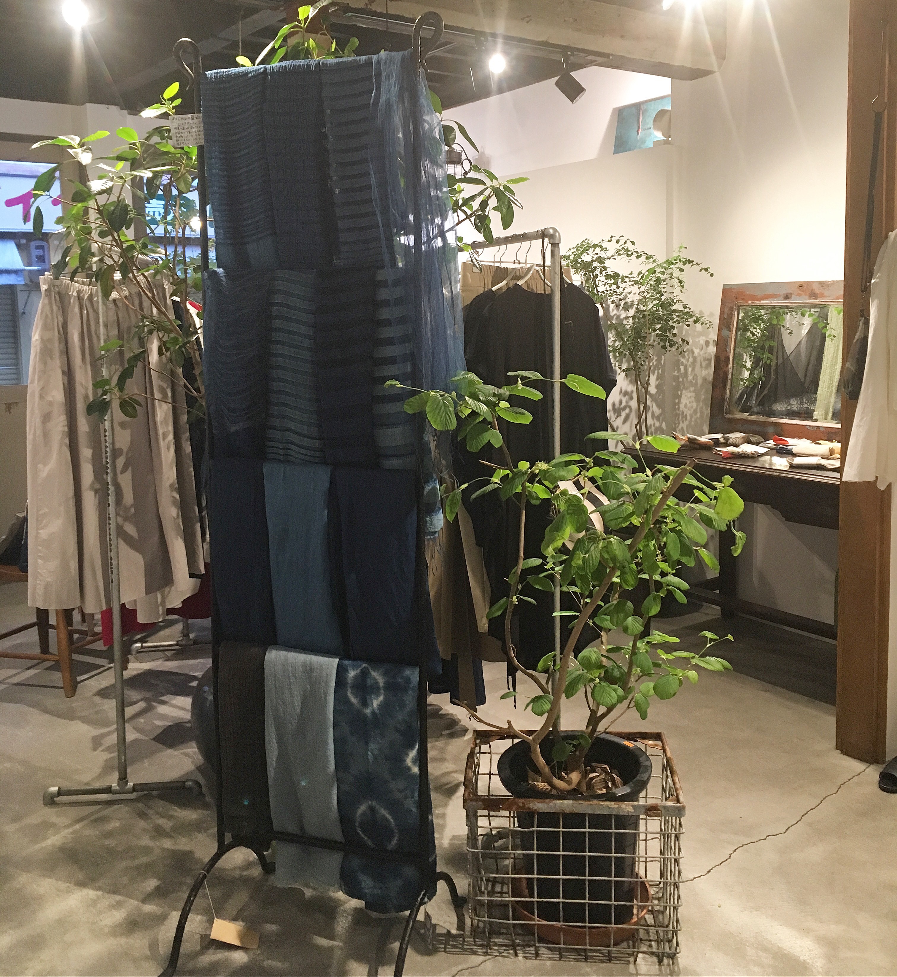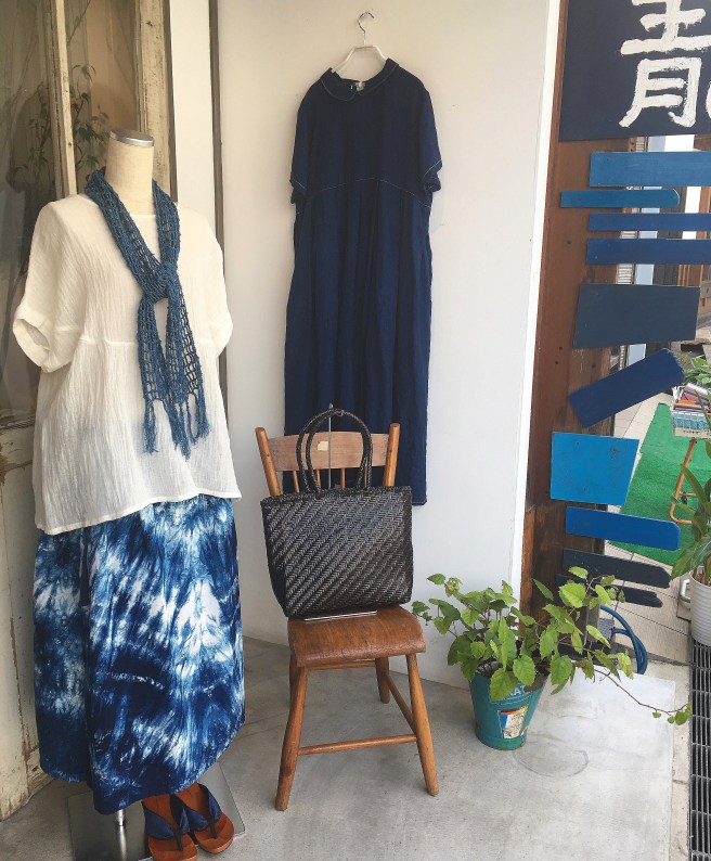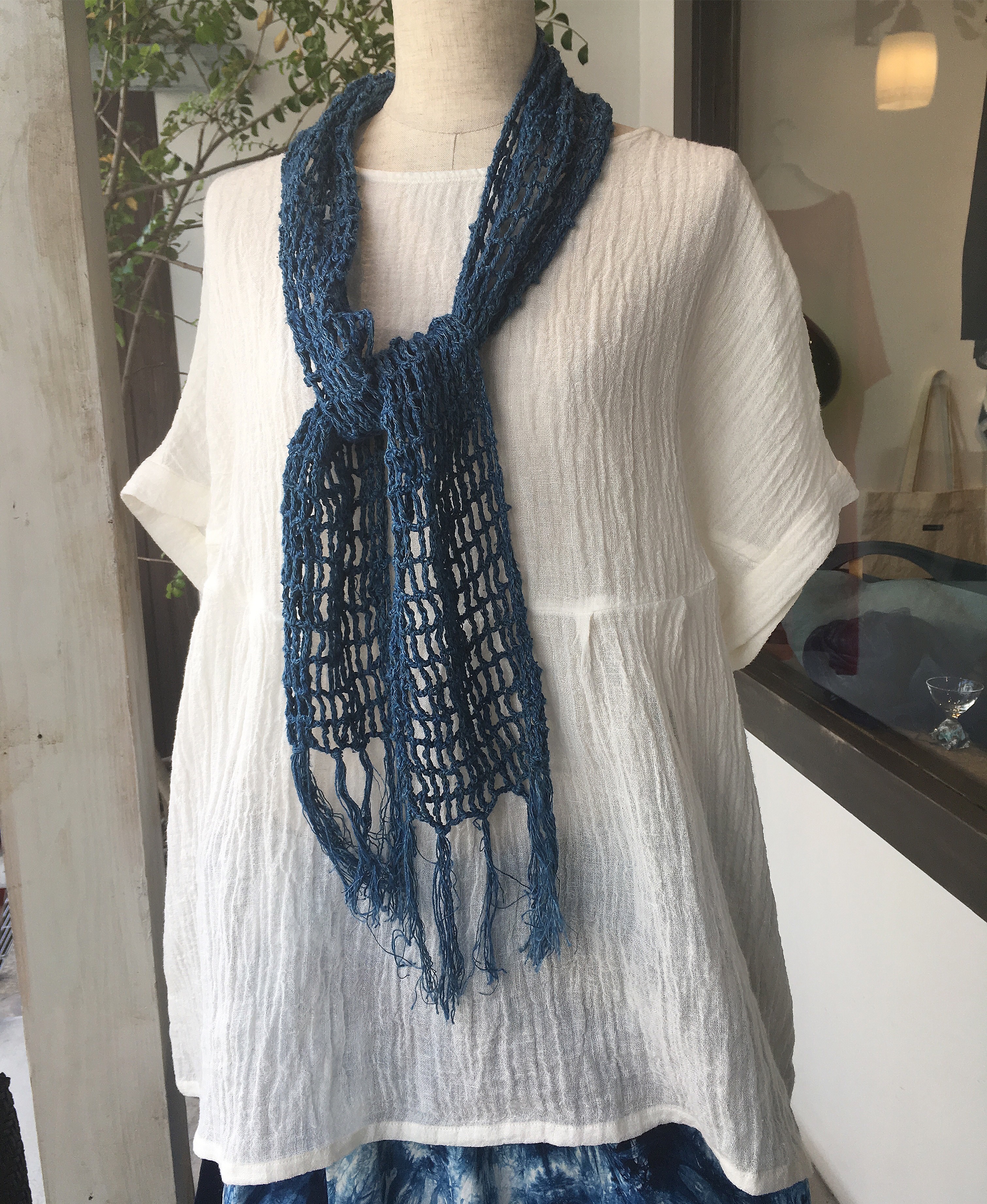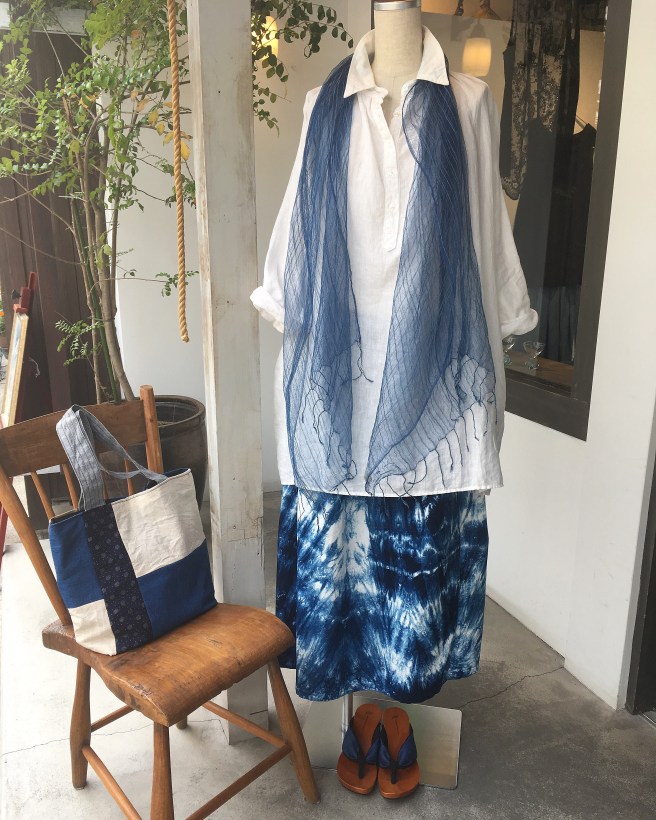 👇今日は藍の絞り染め、巻きギャザースカート 24,000円+税をマネキンに着せてみました(╹◡╹)