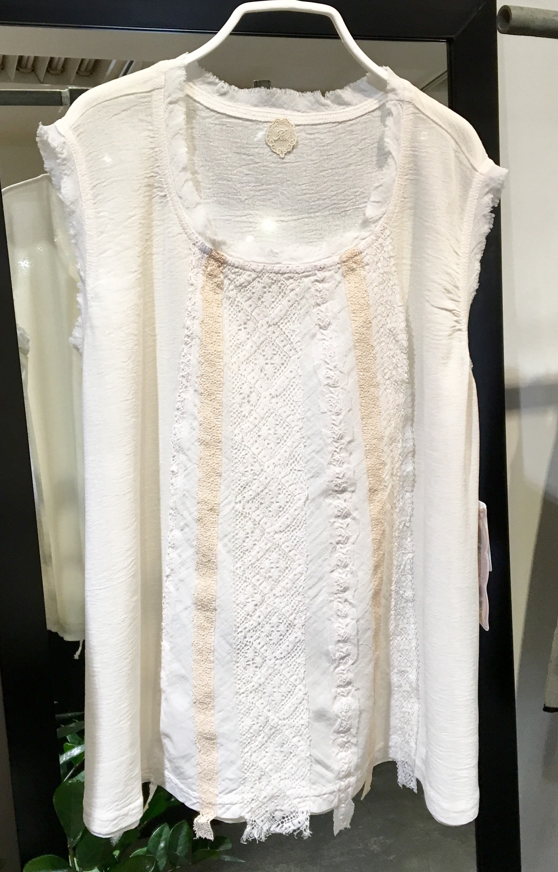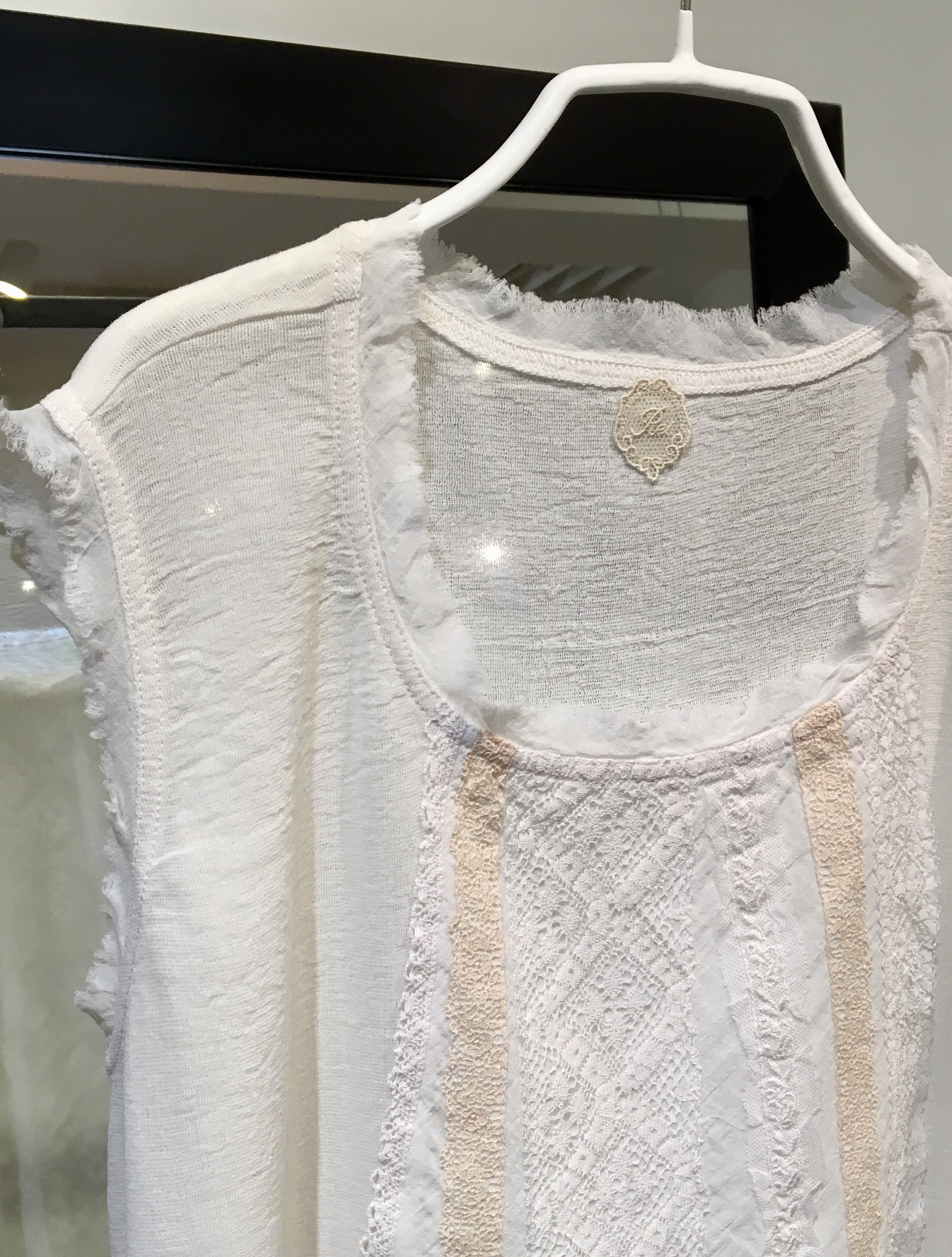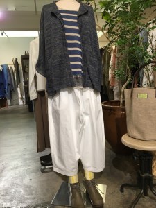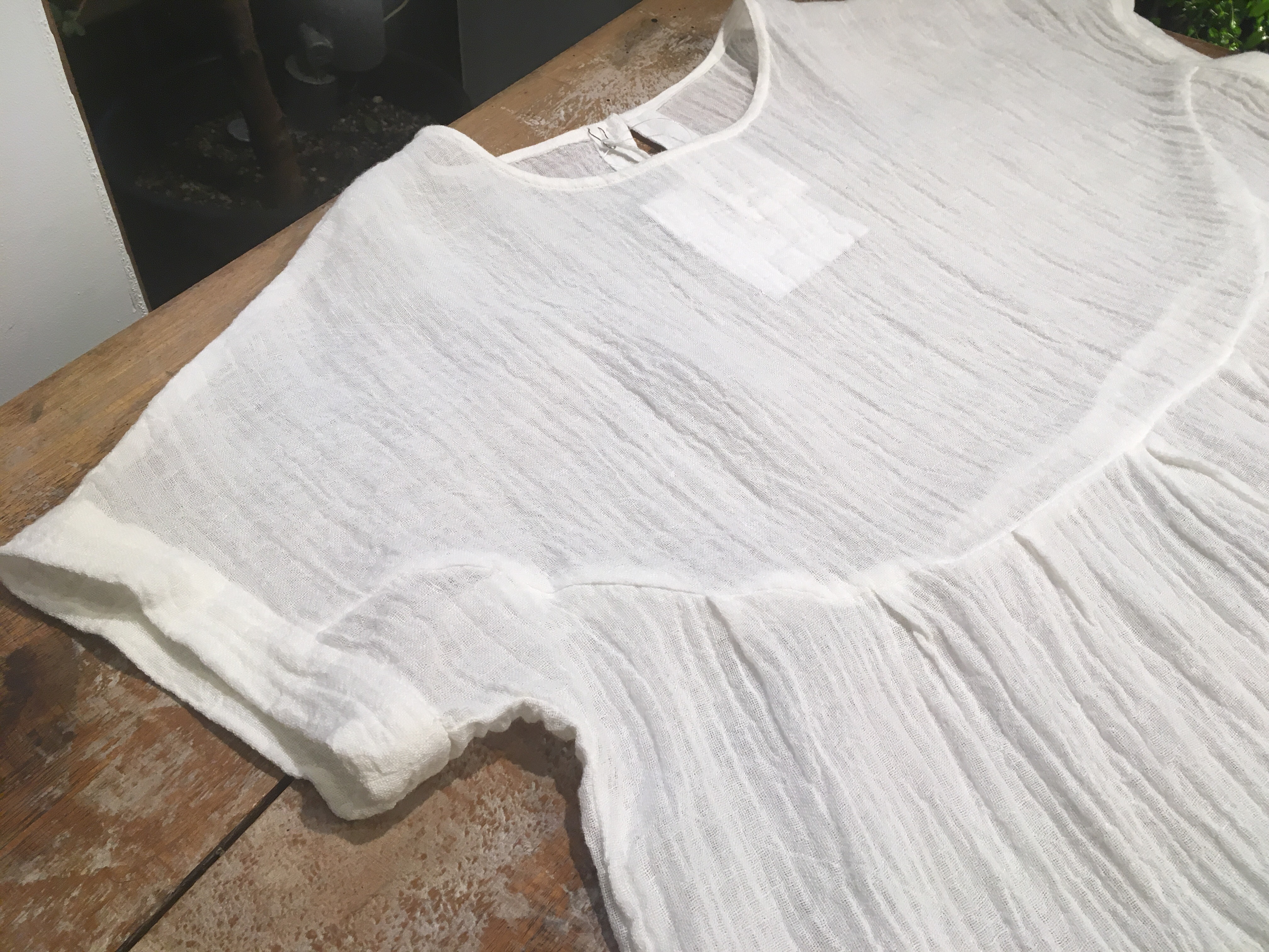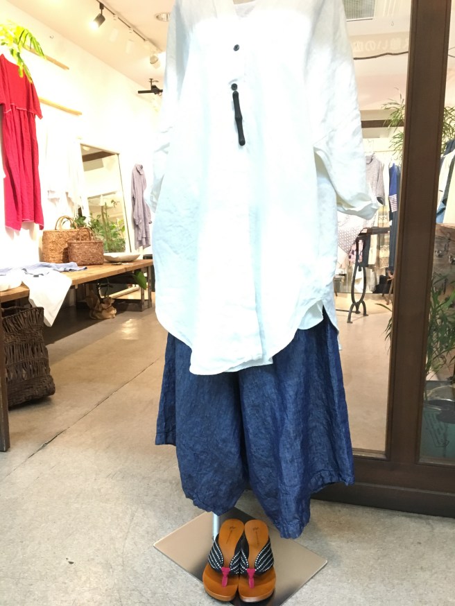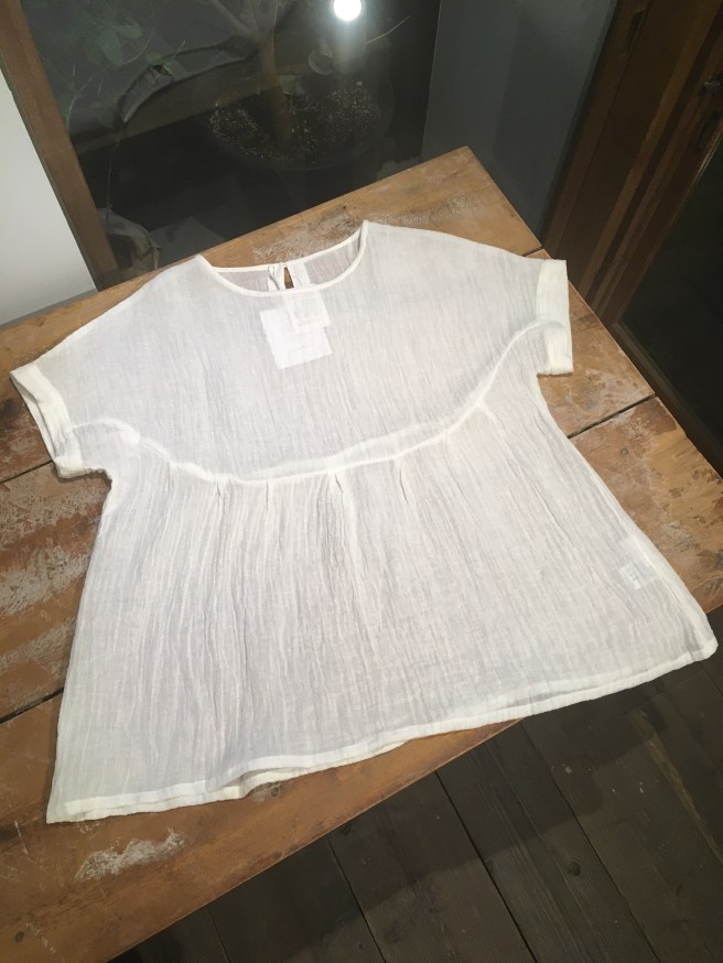 トップスは+2の透け感のある、白のリネン、18,000円+税