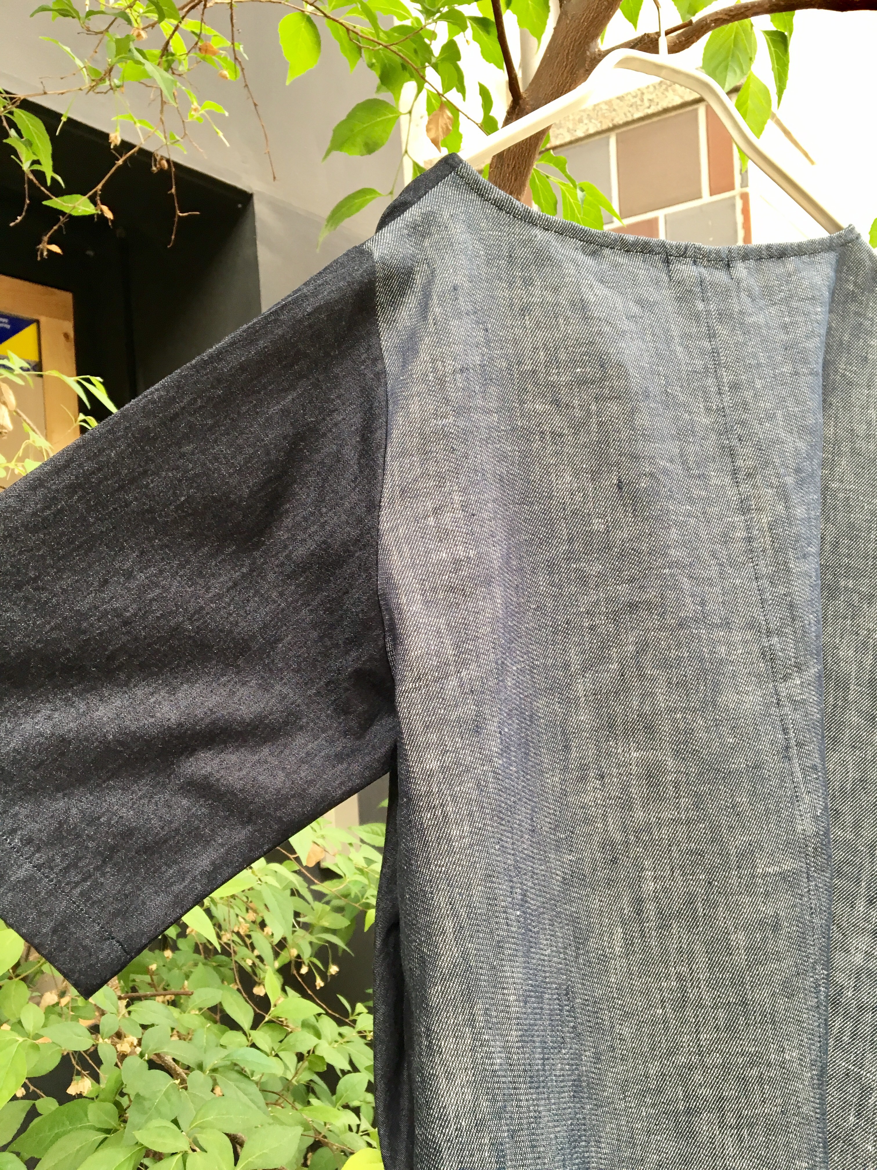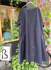 前はデニム(綿100%)、後ろは麻100%の切り替えワンピース‼︎