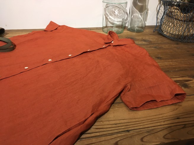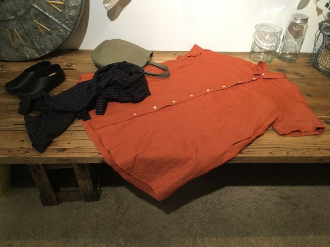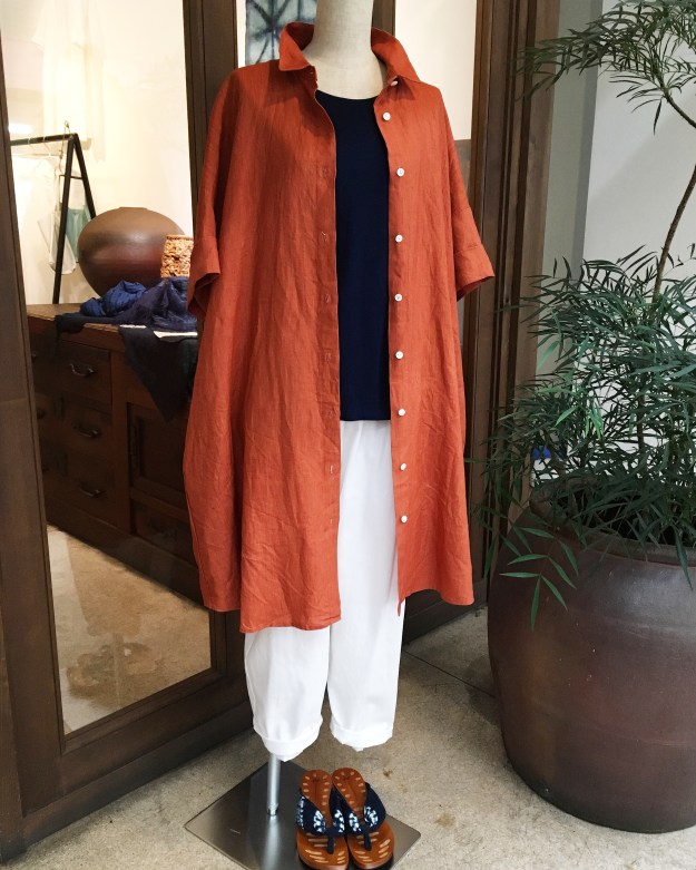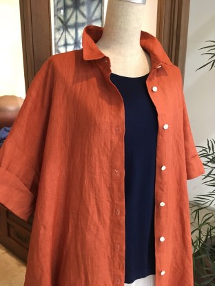 ①+2の柿色のリネンのチュニックブラウス、25000円+税