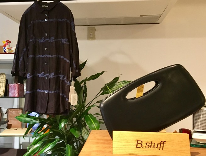 茶色にブルーの刺繍が入った、素敵なMIYACOさんのブラウスに、B-stuffさんの定番バッグ‼︎‼︎
