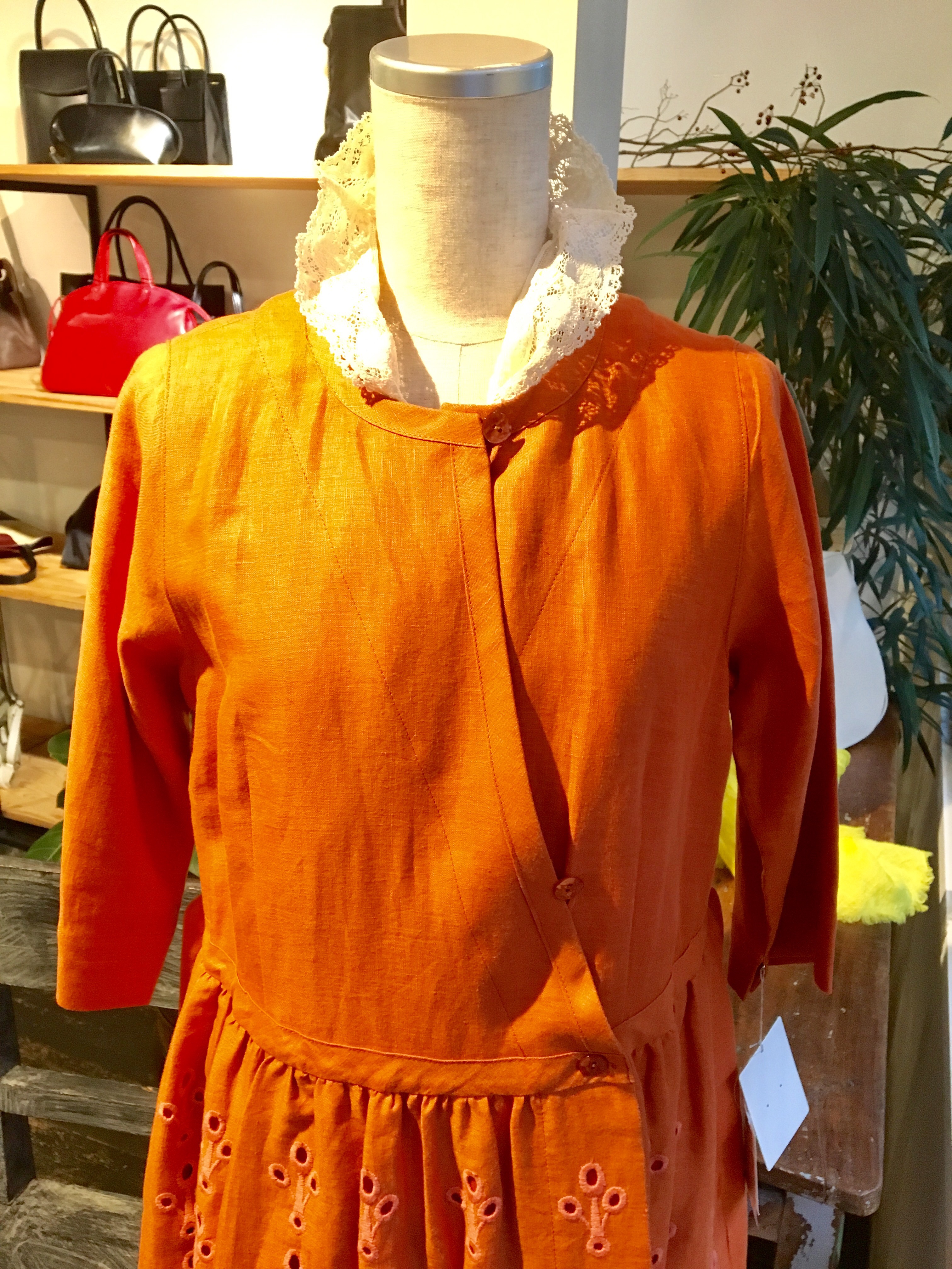 発色の良いオレンジのカシュクールワンピース‼︎