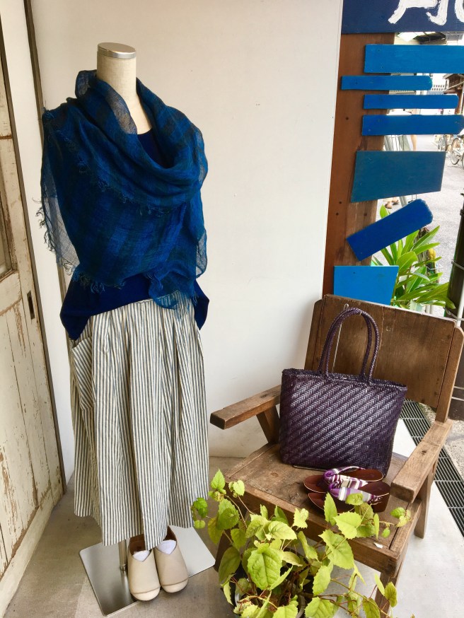 児島の高城染工さんで染めて頂いた、素敵な藍染のタンクトップとストール‼︎