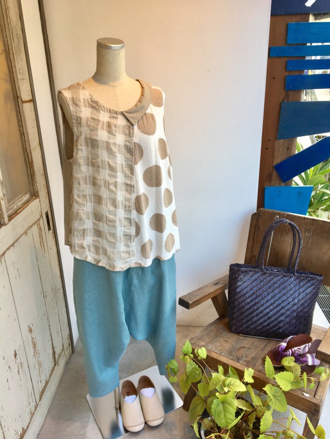 方襟付きノースリーブブラウスに、サルエルパンツを合わせてみました‼︎‼︎