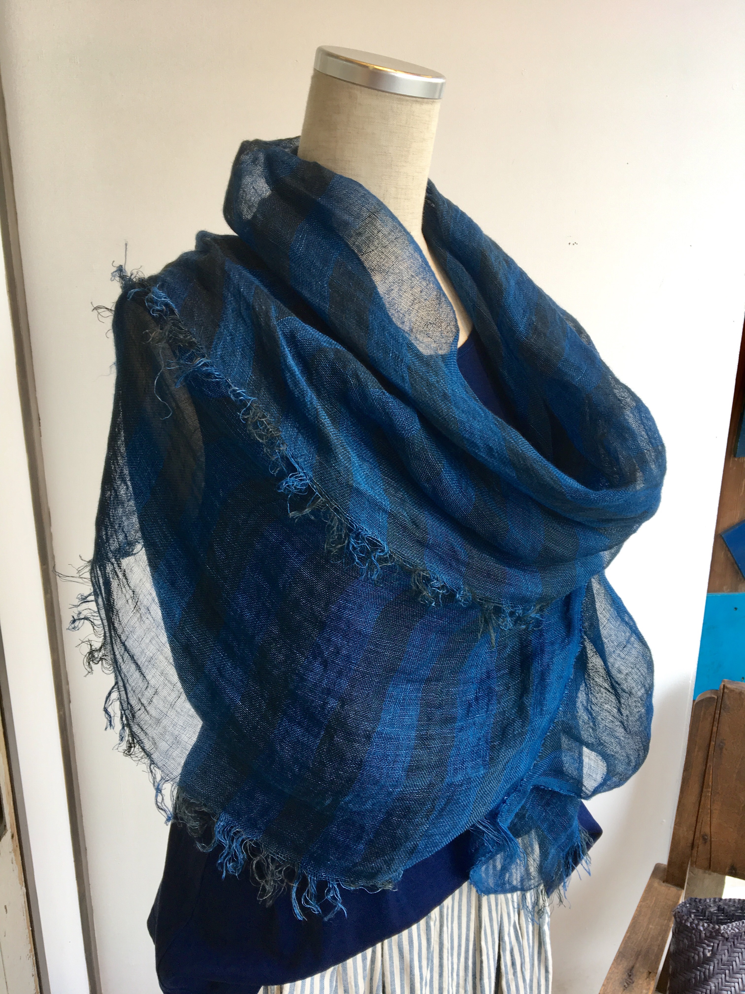 児島の高城染工さんで染めて頂いた、素敵な藍染のタンクトップとストール‼︎