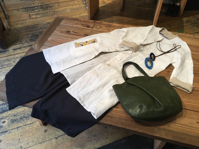 ちなみに赤の籠バッグは水牛の革のメッシュバッグ(36000円+税、色違いあり、オンラインショップもご覧下さい)