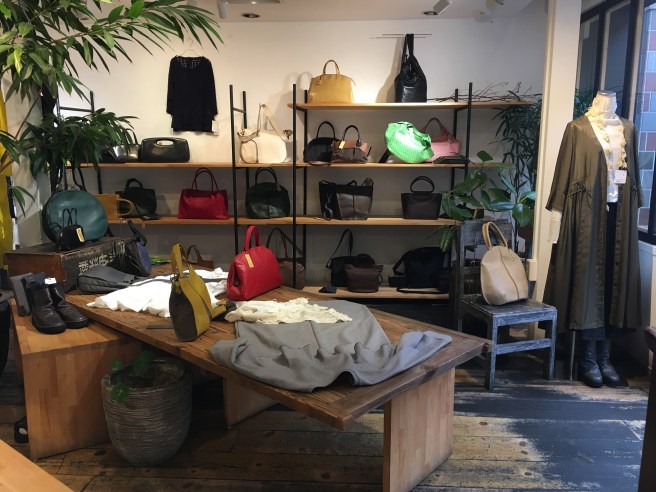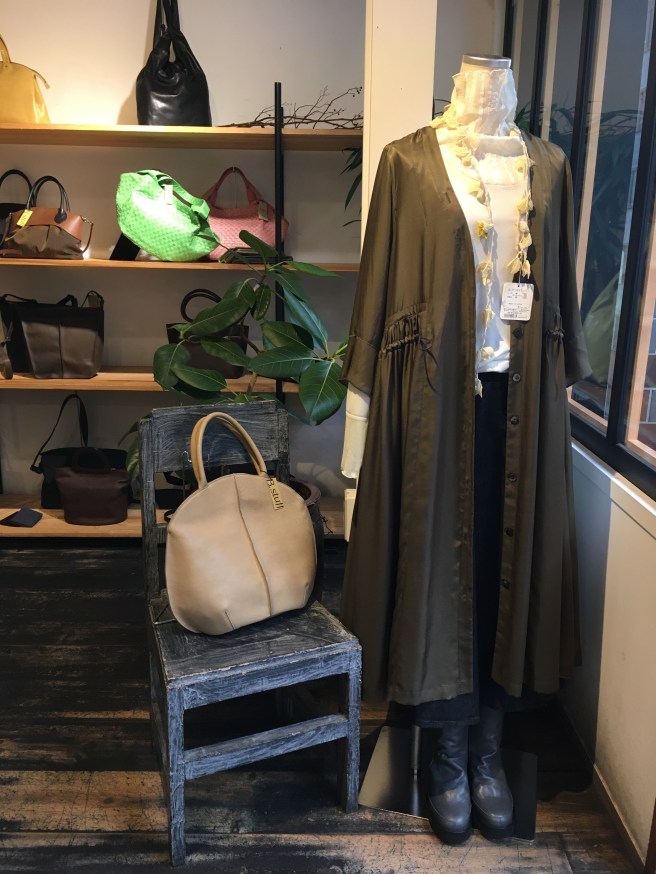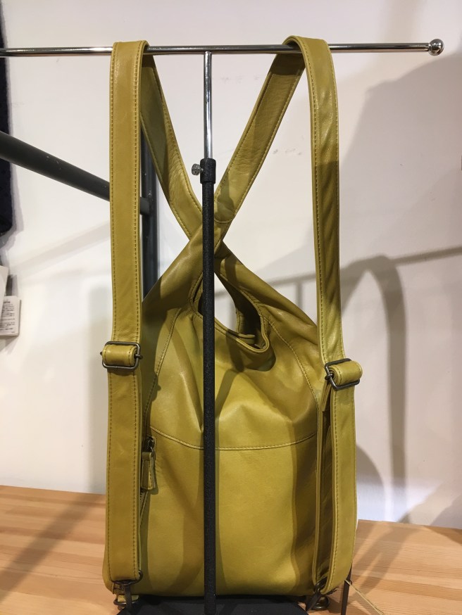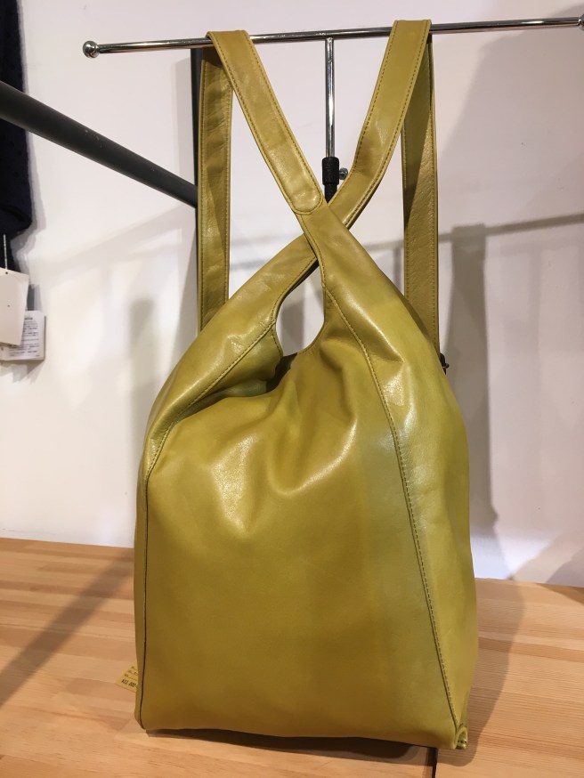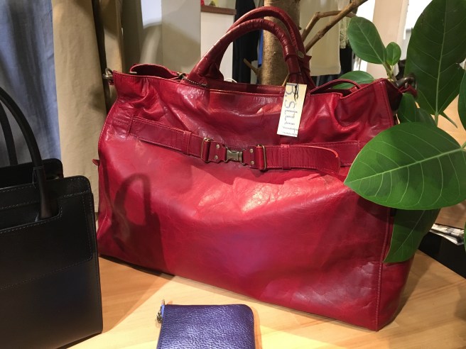 先程のターメリックの色違い、リュックにも手提げにもなる、b-stuffさんのバッグ、バーガンディ、こちらは39000円+税
