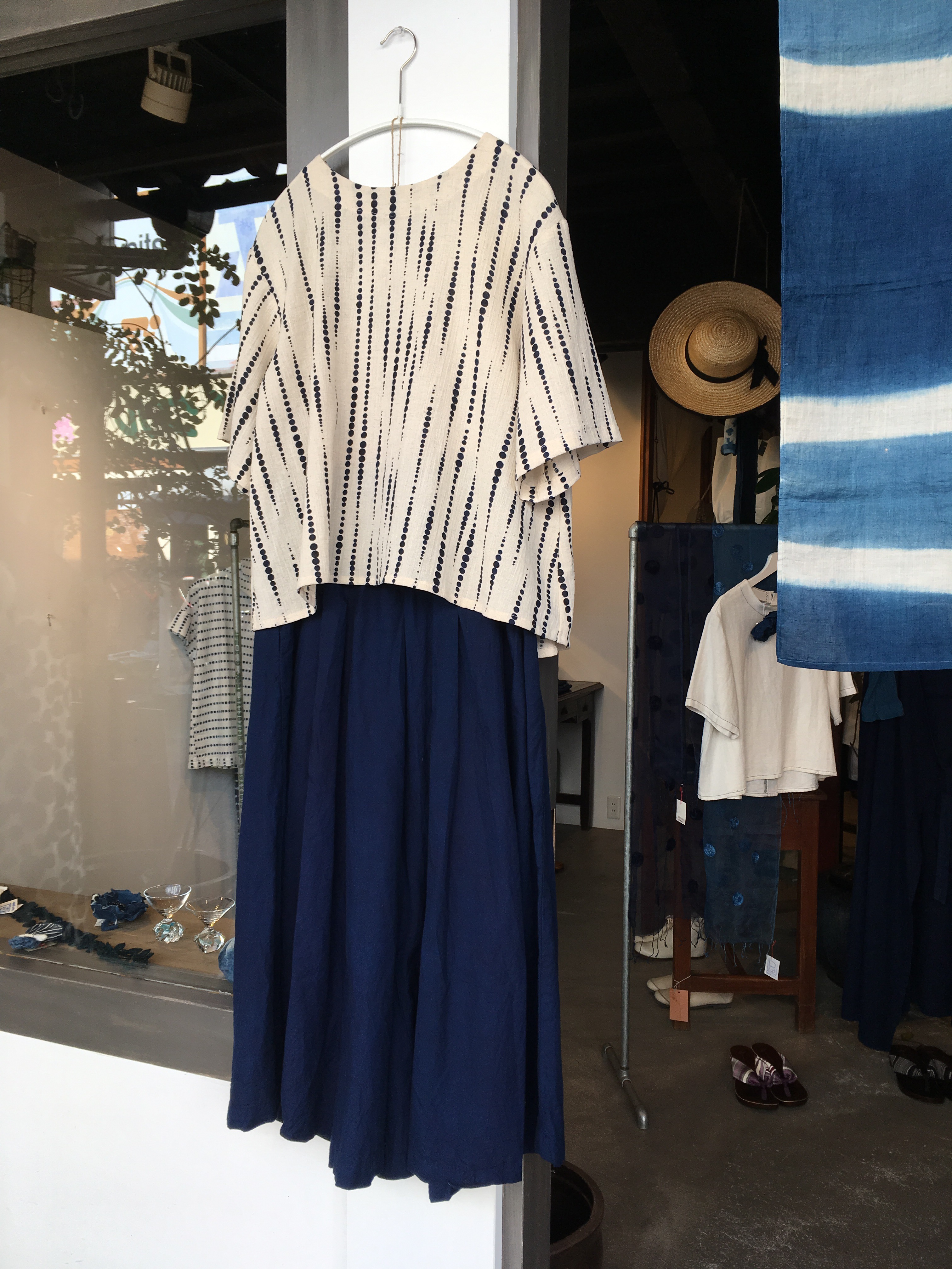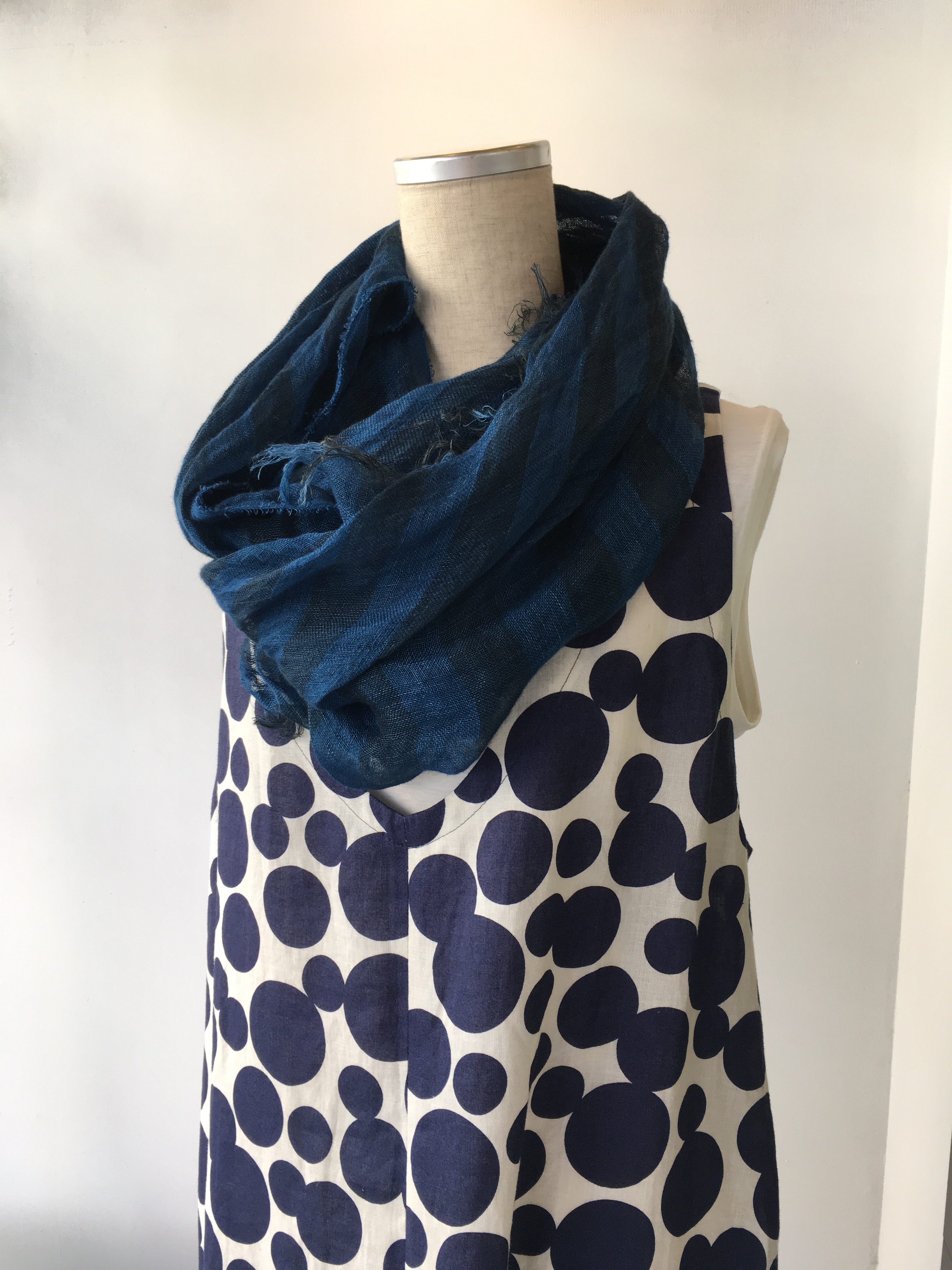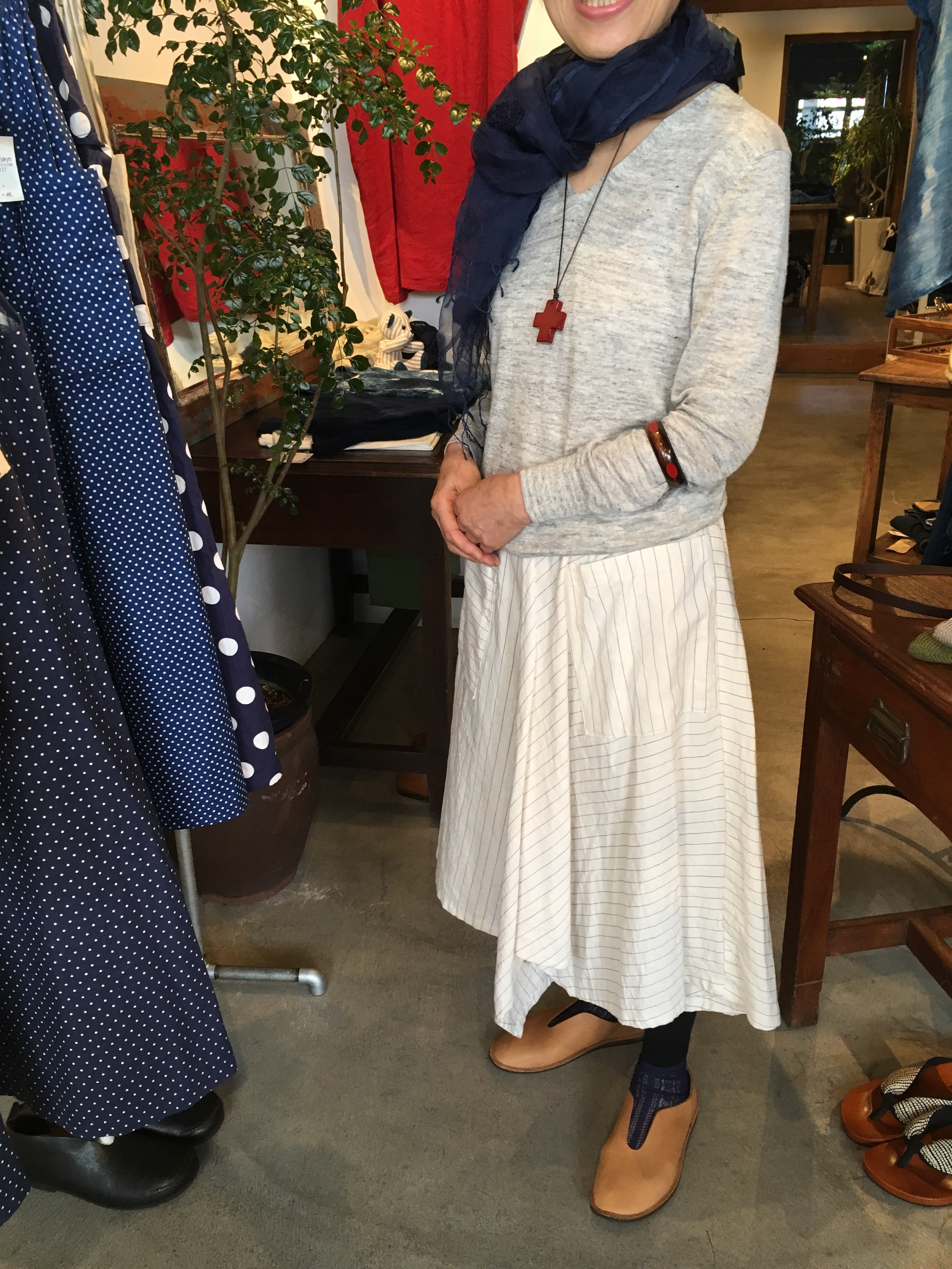 変形シルエットのスカートと藍染ストールをくるくると🎶