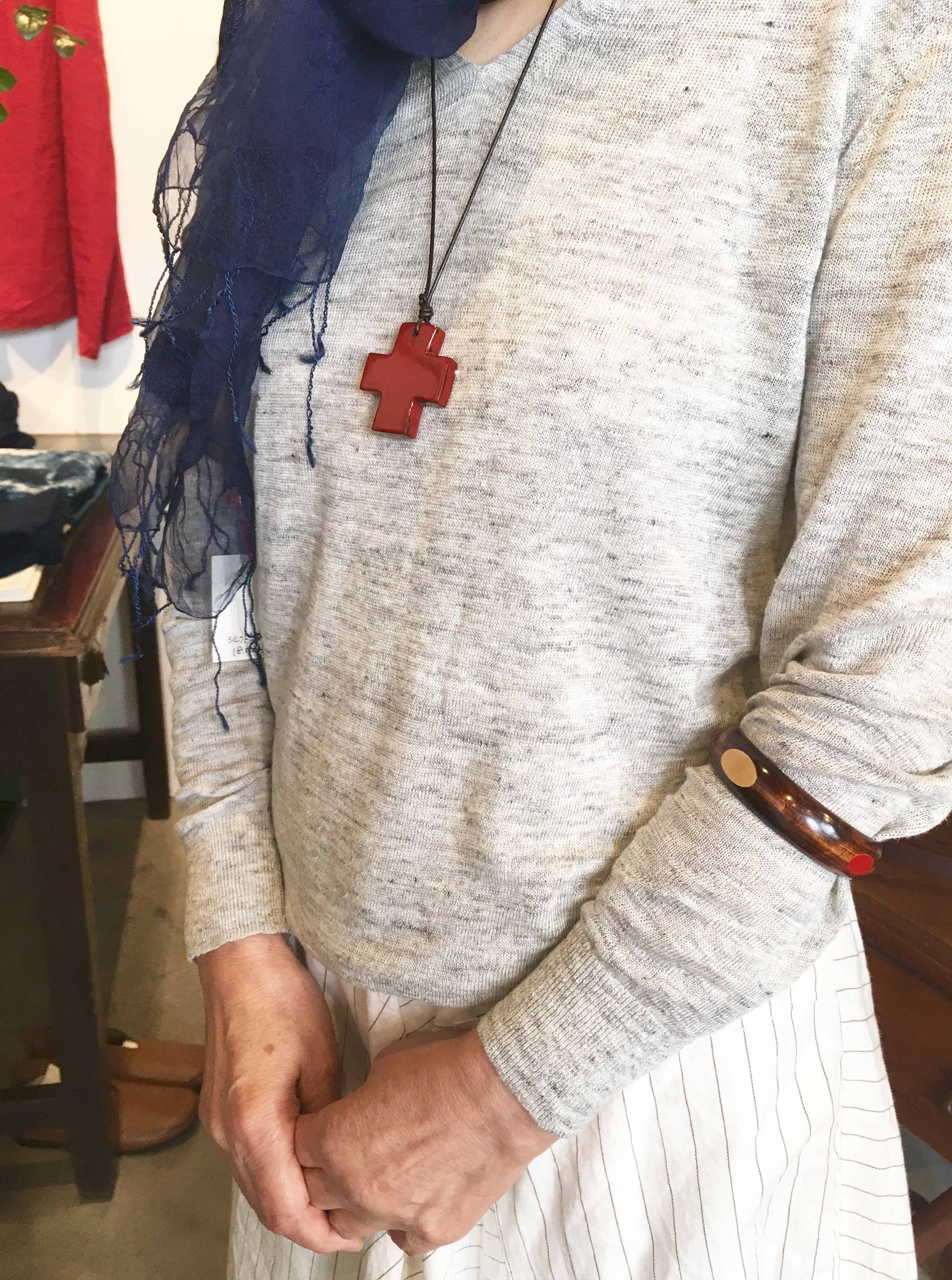 ご自身の赤い漆のネックレスとブレスレットを付けられてます✨(´∀`=)