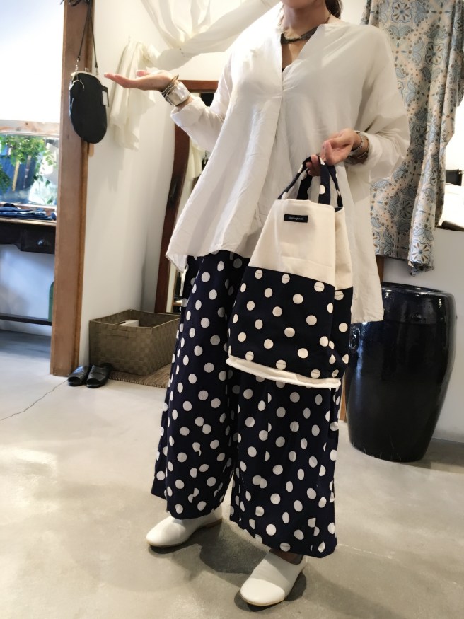 藍染ガウチョパンツと水玉プルオーバー✨(´∀`=)
