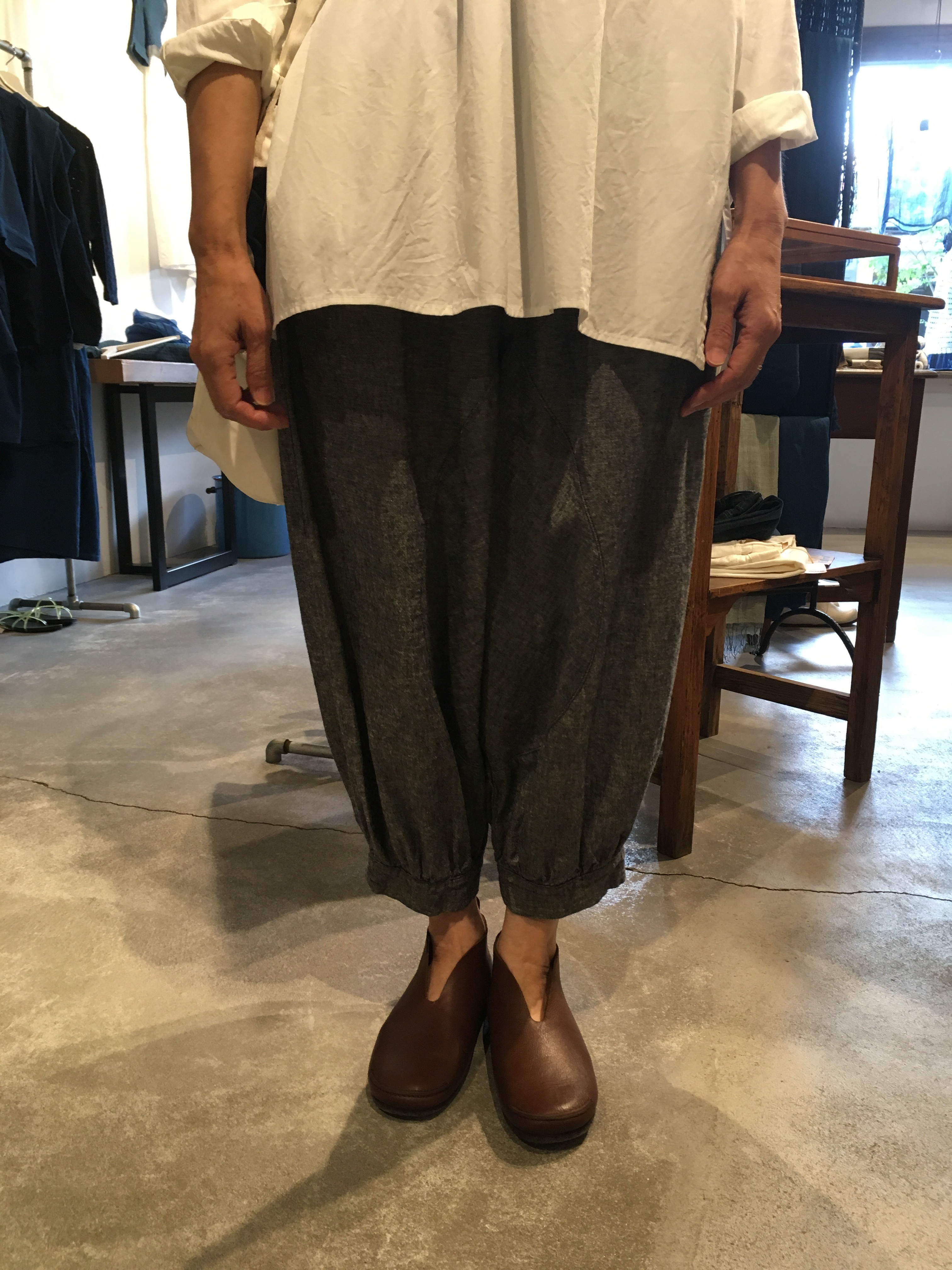 ボトムもミヤコさん、ウエストはゴム、綿に少しだけポリウレタン。