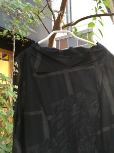 メイアファボリ 黒地 表面加工 裾端を使ったプルオーバー 19000円+税