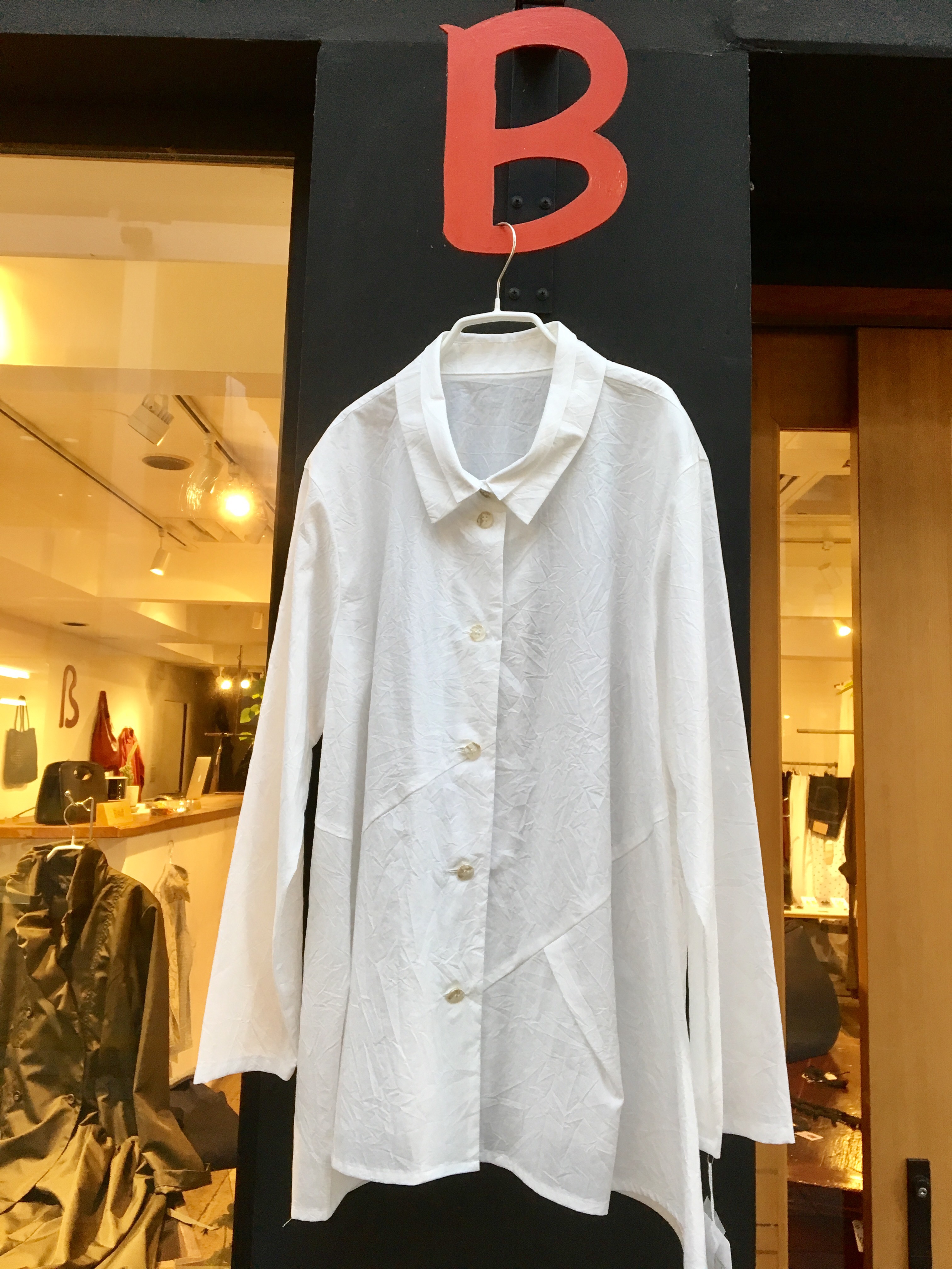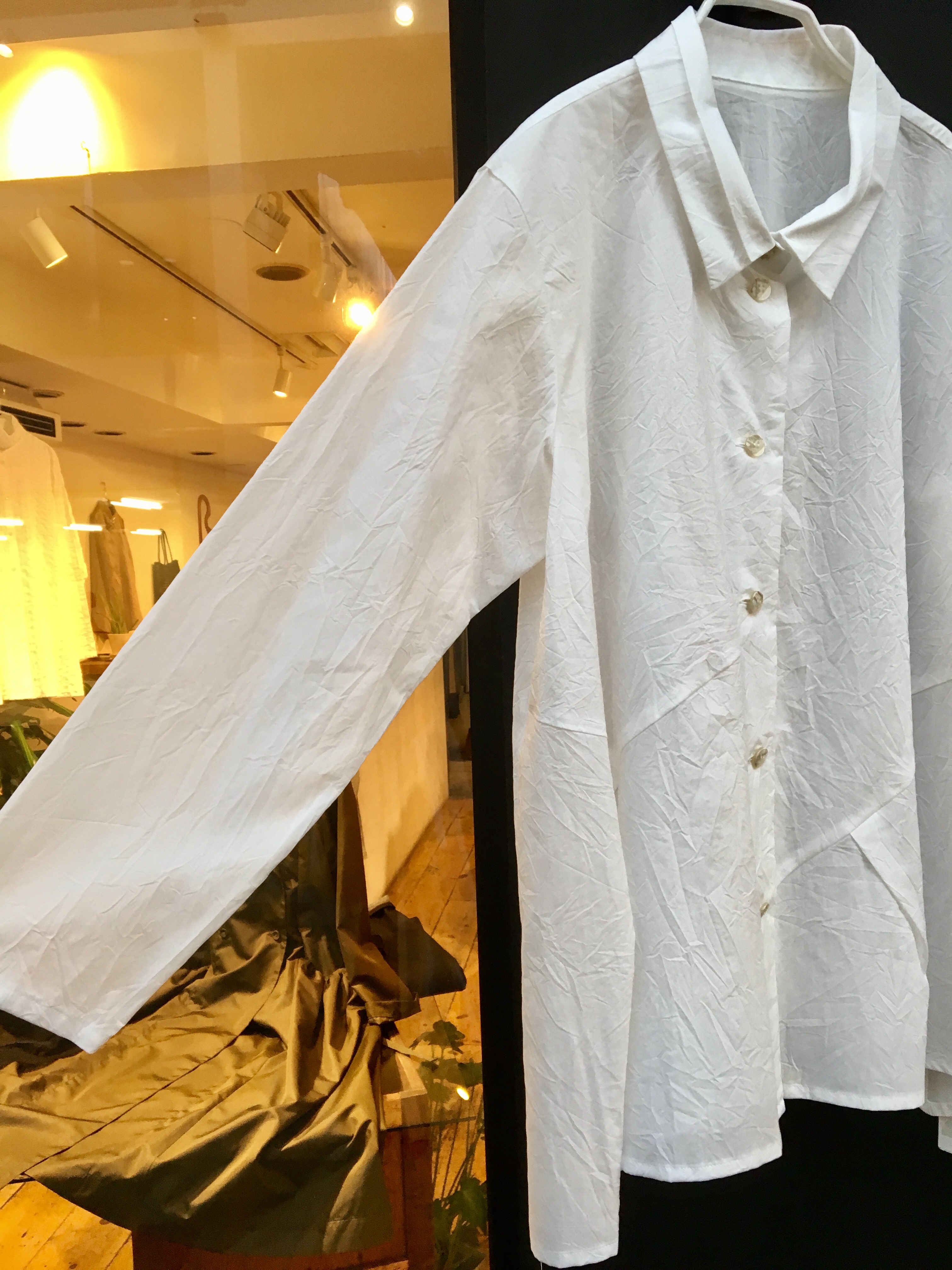 シワ加工された、シンプルな型のブラウスです‼︎