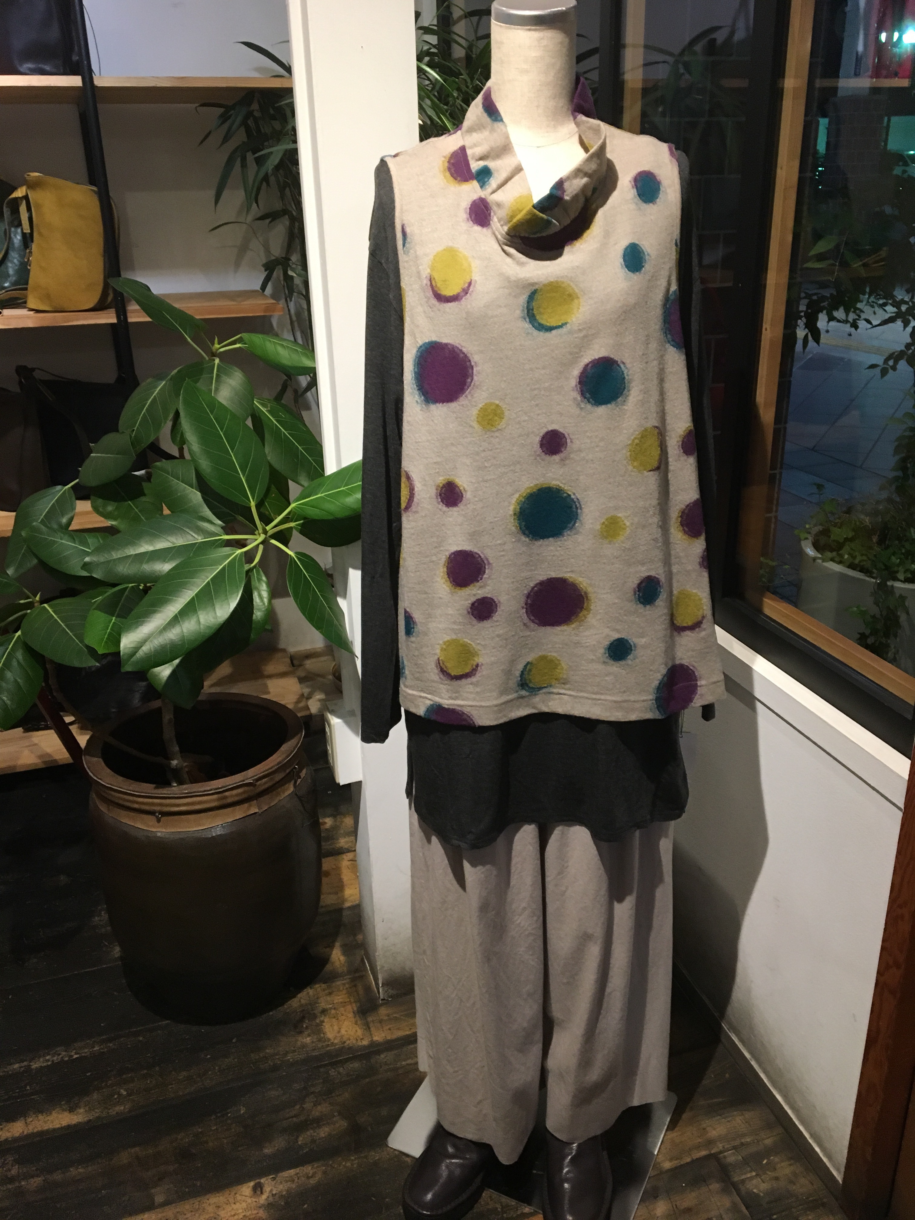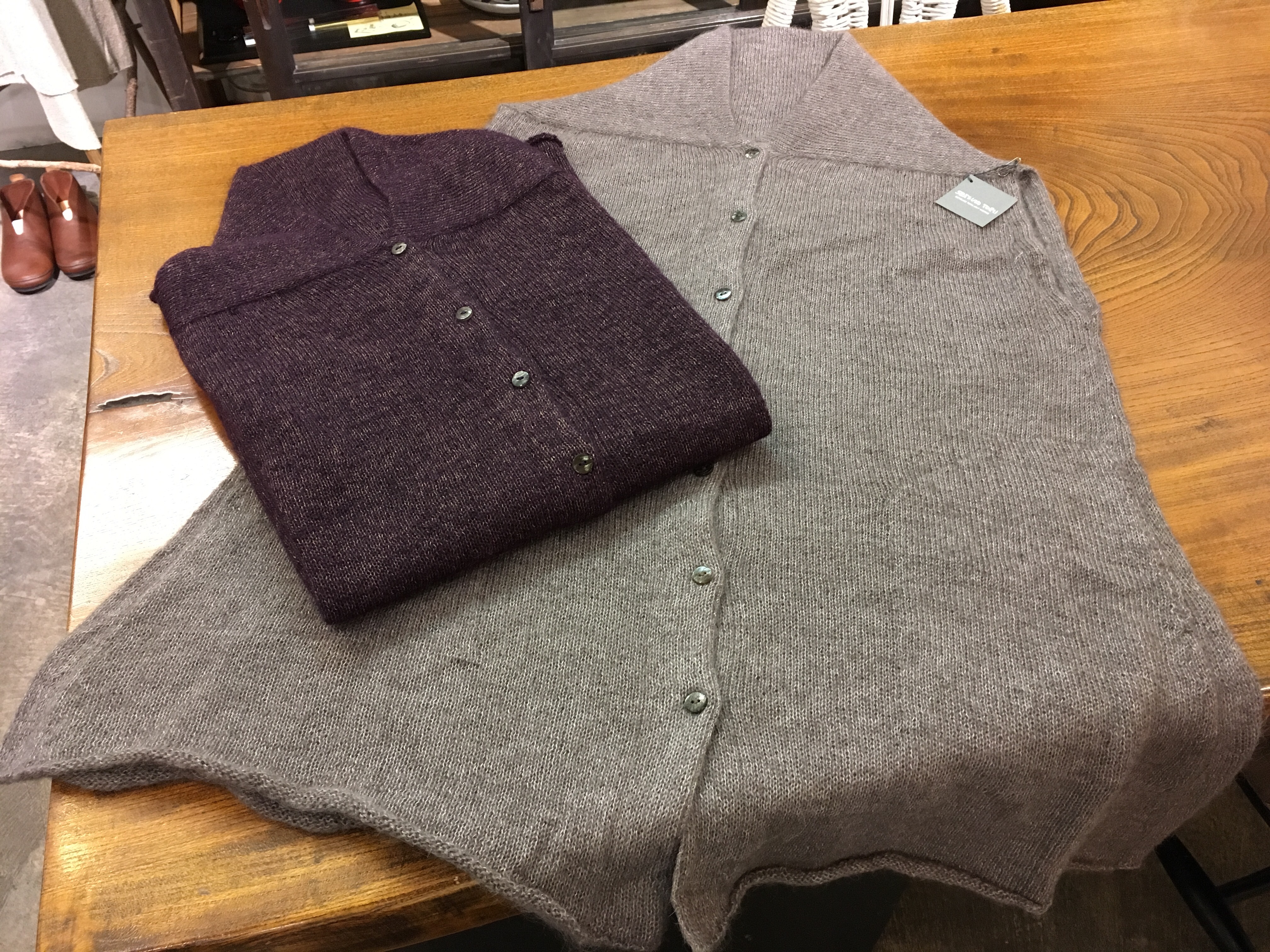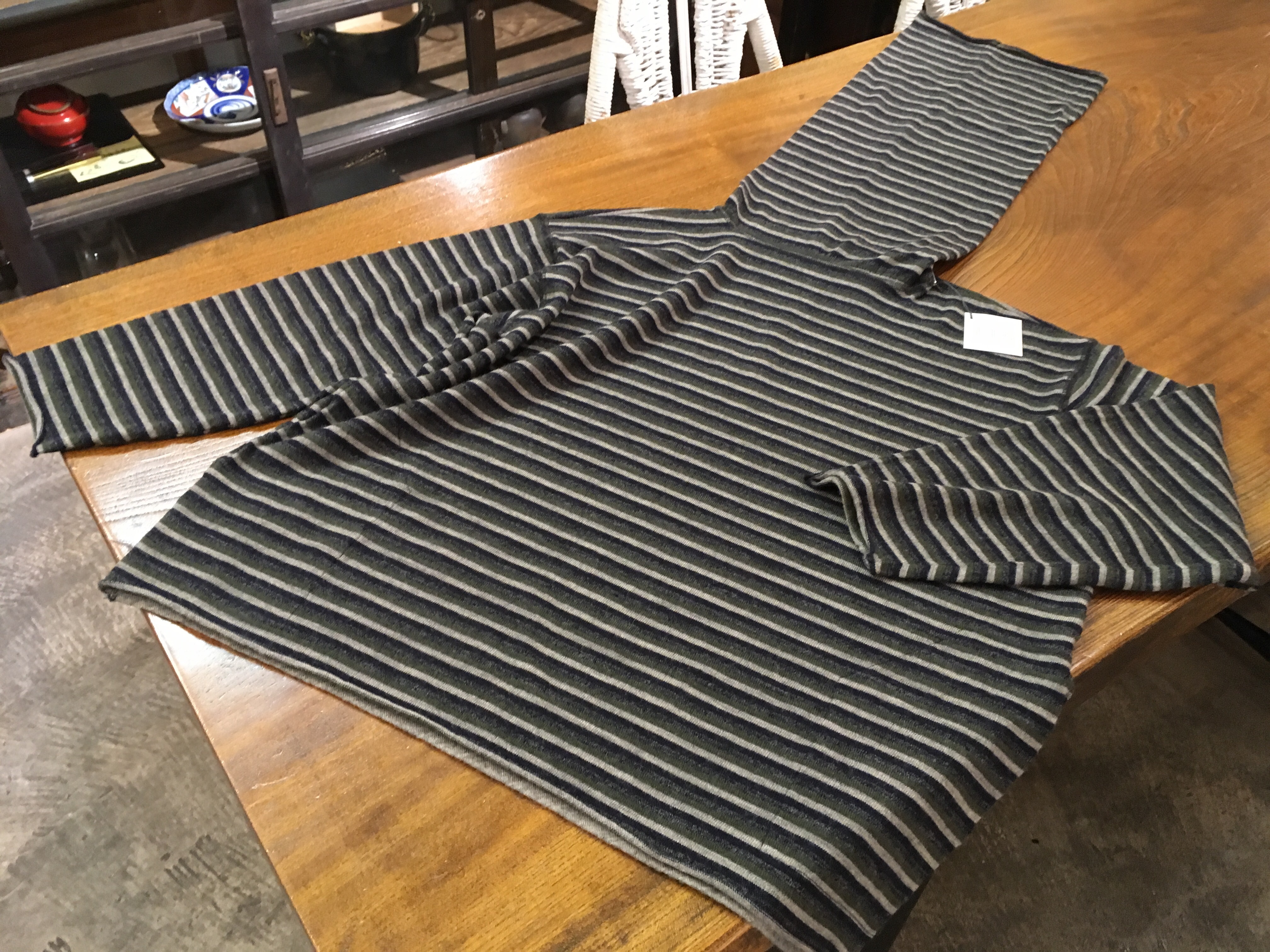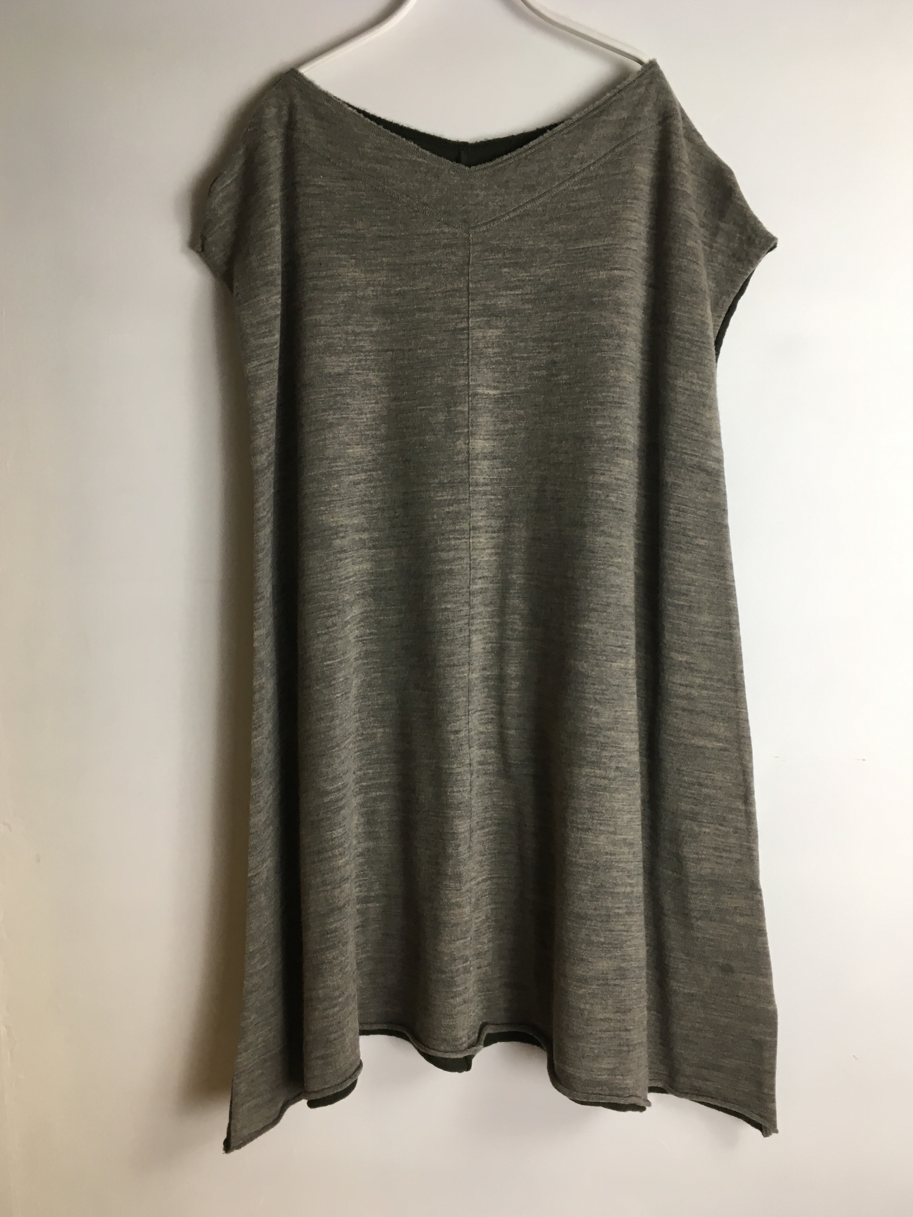 ウールのベスト風、半袖プルオーバー、グレー✖️カーキ、19000円+税