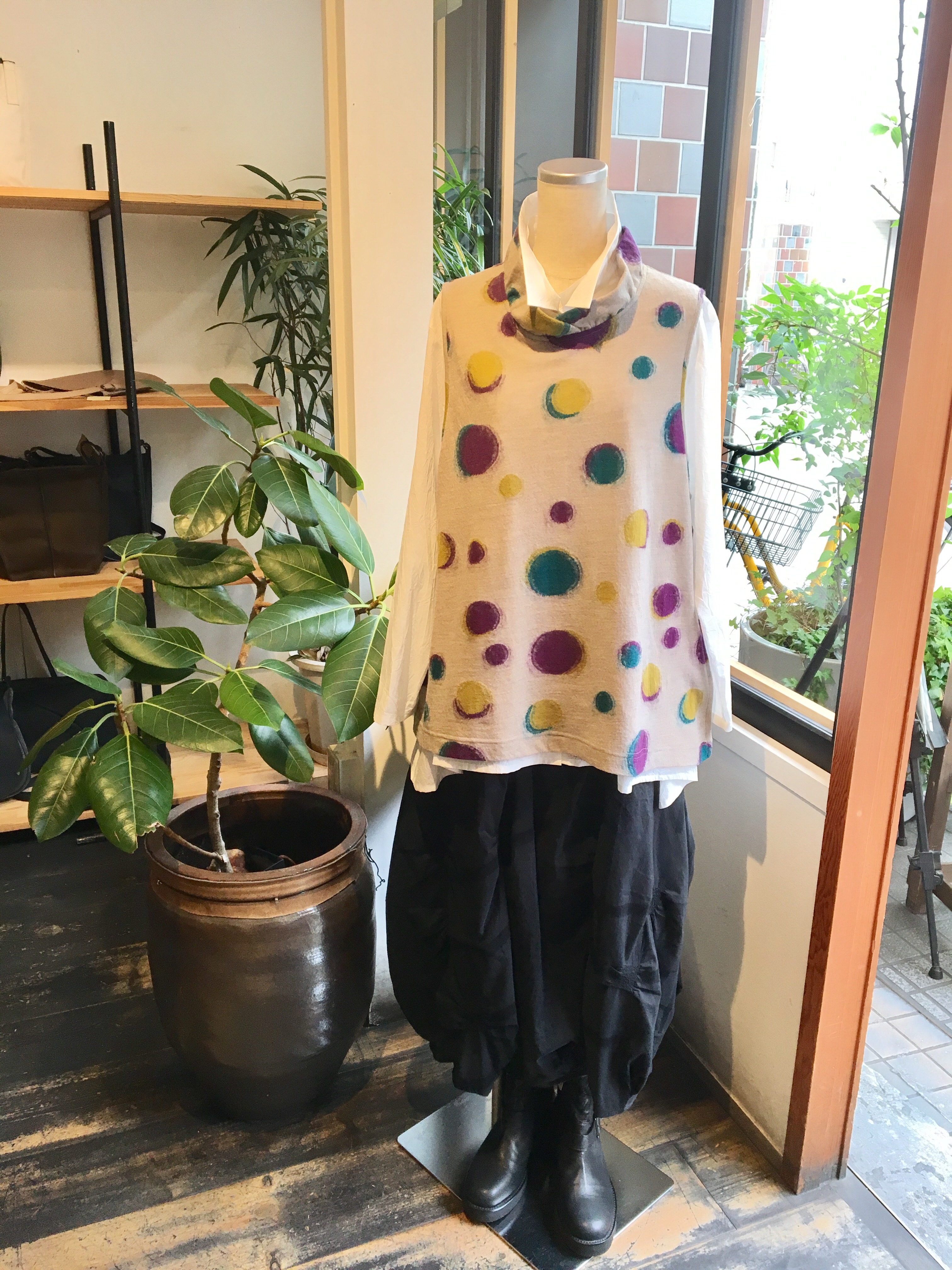 ドットが可愛い、軽くて暖かいベストです‼︎‼︎