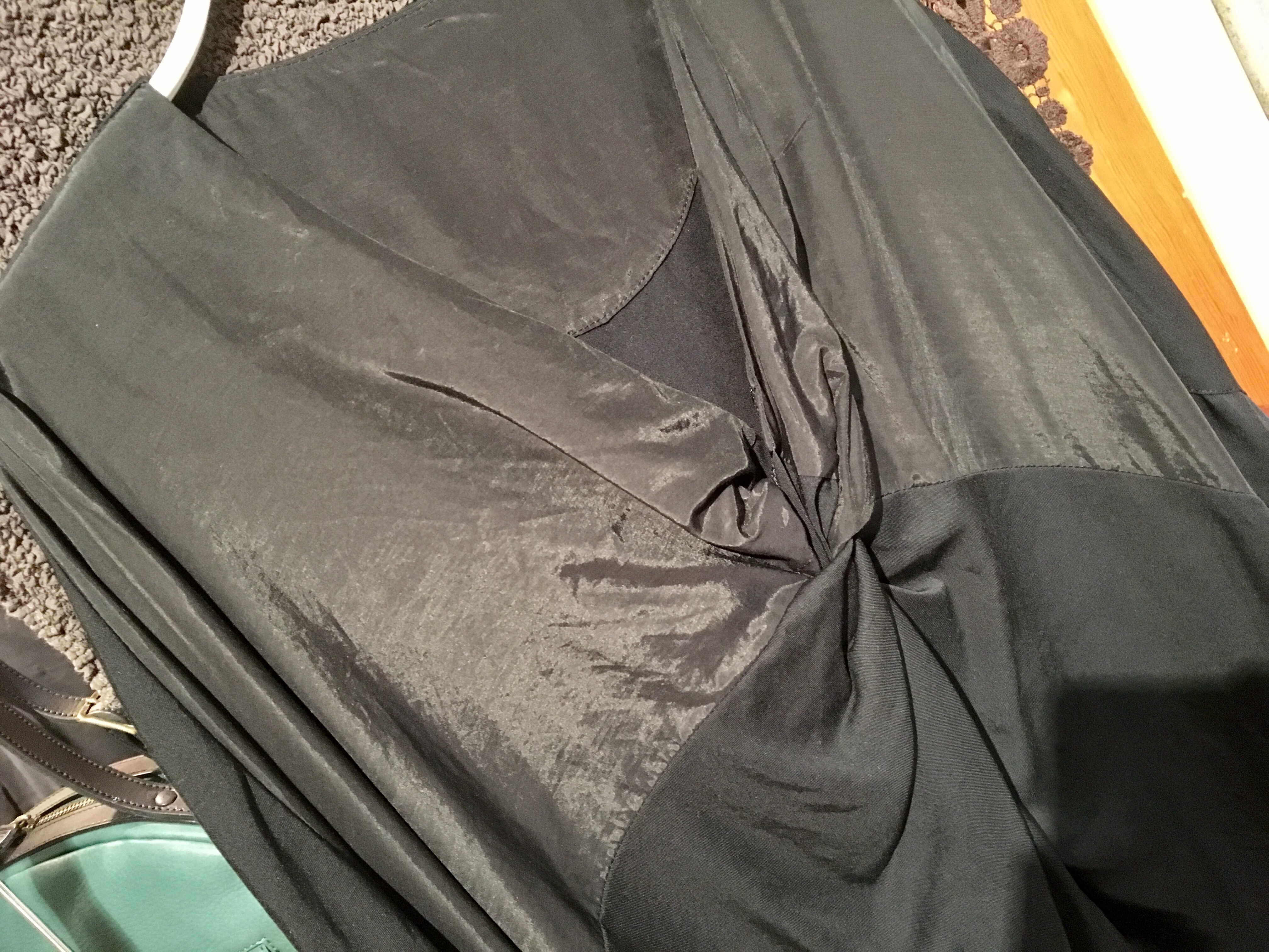 襟周りは、サテンのような光沢感の有る生地を使ったワンピースです‼︎