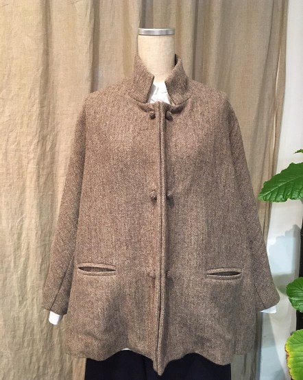 ②茶色と白のヘリンボーン柄のショートコート、42000円+税