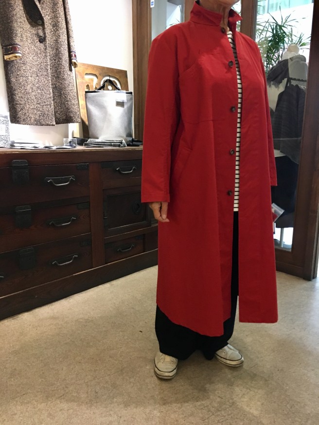 ⬇️同じ素材のステンカラーコート、28000円+税