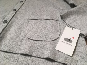 糸の色、首元のボタンが素敵!