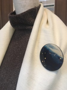 藍染の和紙を使った樹脂ブローチ