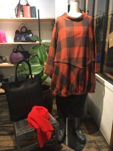 カドリールのチェックのパンツ、27000円+税→18900円+税とコーデしていました♬