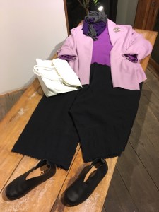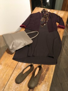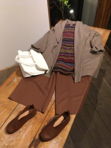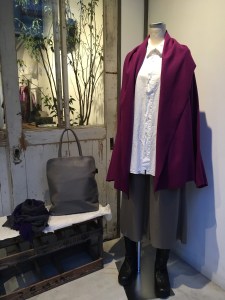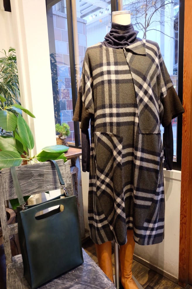 ラグラン袖のジャケットに、チェック柄のスカートを合わせて‼︎