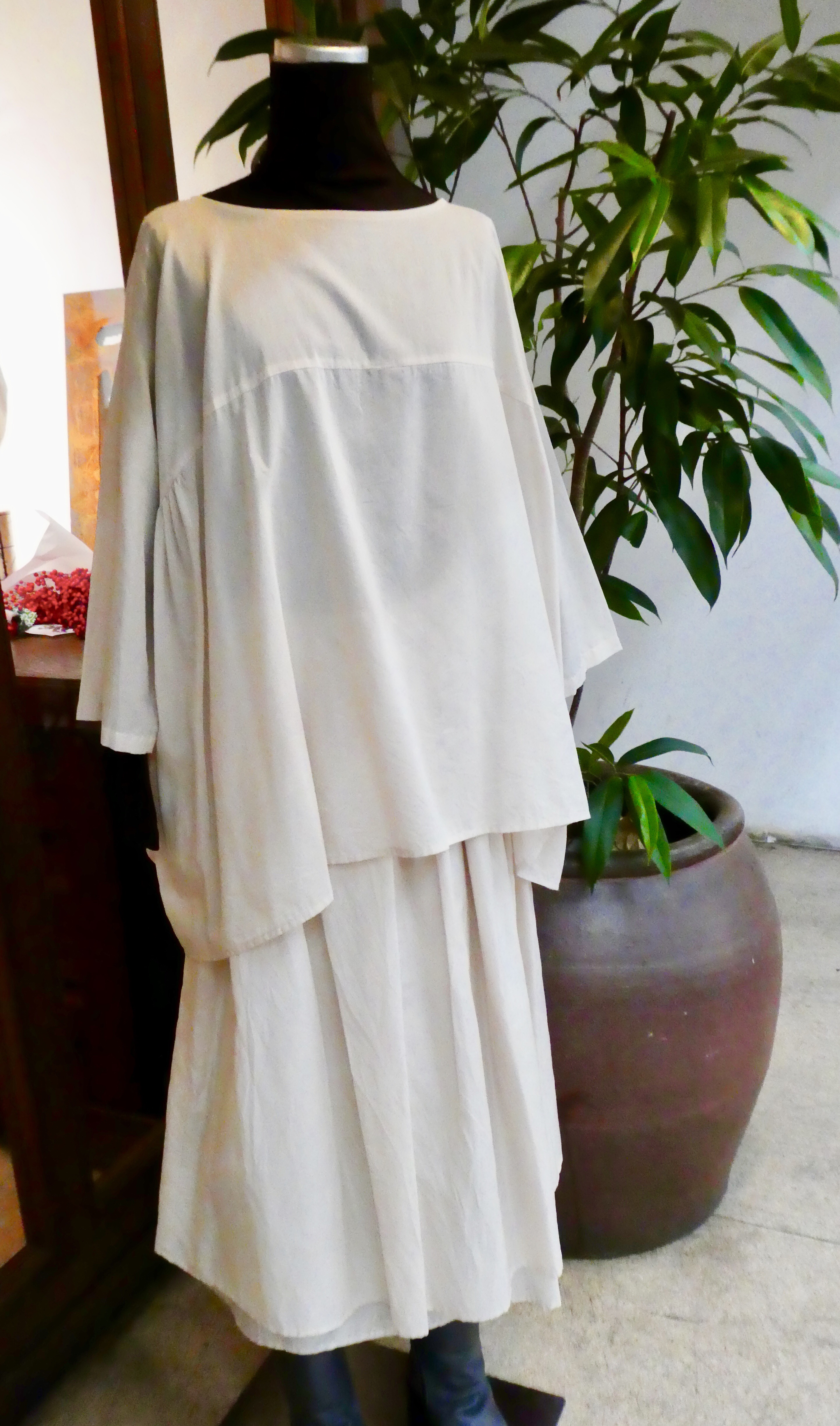 デニールさんのザックリ着れるワンピース丈のブラウスにBオリジナルの大人気コートを合わせて‼︎‼︎