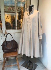 デニールのドレープたっぷりのロングシャツワンピース(28000円+税)