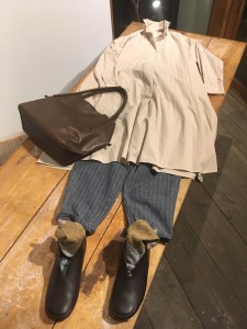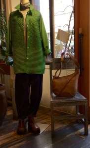 1枚でも着れますが、ボトムにデニールのカーキのパンツをコーデ♪