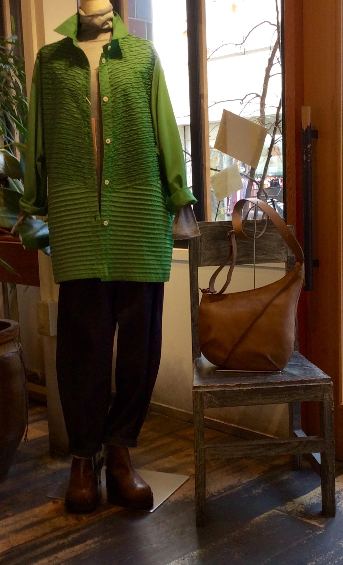 1枚でも着れますが、ボトムにデニールのカーキのパンツをコーデ♪