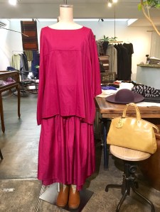 こちらは藍をムラ染めにしたワンピース。
