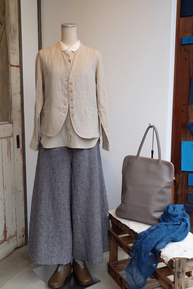 生成りのブラウスとベストを合わせて‼︎