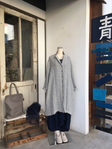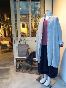 夜は寒いのでリネンコートを羽織って(о´∀`о)