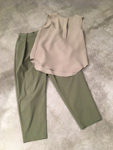 タック入りのパンツは黒とカーキ✨