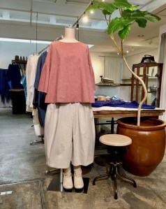 デニールリネンプルオーバー ピンク系で角度で紫が引き立つ素敵なカラー