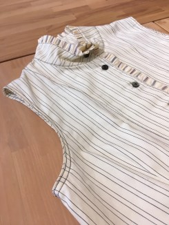 ミヤコさんの程よくフリルが効いたストライプのベスト、18000円+税