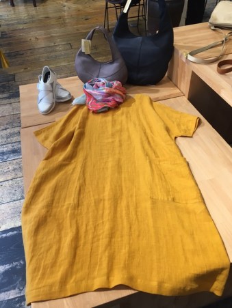 タイガーママの辛子色のチュニックワンピースは大きなポケットがキュート♬