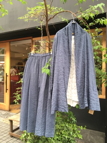ぷくぷくした生地が雰囲気のある羽織は25000円+税
