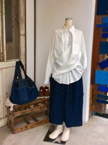 同じ生地の卵型シルエットのパンツ、19000円+税
