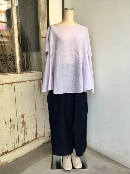 ラベンダーカラーのリネンのプルオーバー