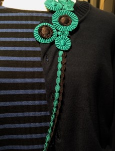水色の綺麗なボタンやポケットのデザインが可愛い。