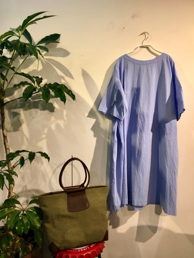 脇下で取ったタックが、ゆっくりザックリ着れるけど、ぶわっと広がらない、便利なシャツワンピです‼︎