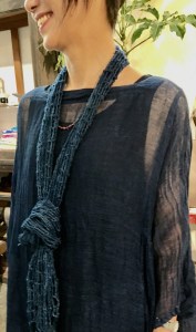 オリジナルの麻の藍染ストールもくるり🎶