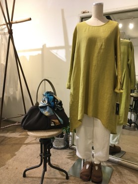 シックなイエローのチュニックはフレンチリネンを使っています✨