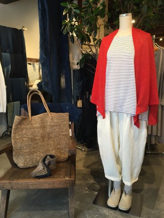 カーディガン→デニール 朱赤が綺麗なリネンの羽織。 13000円+税